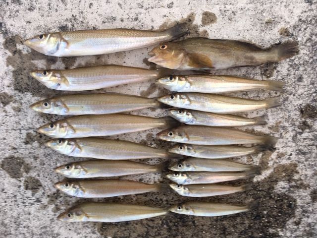 予想どおり1投目から当たりが有り、お昼までの2時間程でキスを20センチ