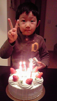 どうも。世紀が変わるほど放置でしたが、生きてます。今日はセガレの誕生日!!ビックリすることに5年経ちました☆はええ~~…と、毎年申しておりますが、ホント早い。私の年もこんなに早くとっているのかと怖いわついでに今日は保育園の進級式。セガレは初めてオモチャ以外のものを欲しがった新しい「瞬足」を履いてウキウキで登園。誕生日にこの「瞬足」とオモチャを買ってあげました。雨で残念だったけど無事に済み、終わった後ケーキを買いに行ってもうテンションは上がりっぱなし(^▽^;)でも進級式でずっとムスメをだっこしてたグッタリの私は何とか説得して2人をお昼寝させて自分もグーグーzzz夕方からササミのフライとサラダや炒めものを作って、いつも仕事でバタバタしながらの簡単な夕食だったので子供も大喜びして食べてくれました。ケーキを前にピース!5歳になってますますお兄ちゃんのセガレくん。怒られてばっかりいるのに、お母さんが1番好きなんだって。なので私も「お母さんも1番好きだよ お父さんとムスメちゃんには内緒ね」と言っちゃってます♪優しい子に育ってくれてうれしいな。これからも、元気に優しく健康な誕生日が迎えられますように…。物欲がすごすぎる…人気bogランキングへ←共感できた方はぽちっとな。