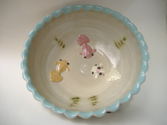茨城県笠間の「きらら館」のねこ展に出品する新作が焼きあがりました。7月31日(火)~8月12日(日)大きな映像は、HP「3point3」の「niku.Q」で見てください。 『3point3』 ←ここをクリック 直径が26cmの平らなお皿に肉球付の手を付けました。肉球の色は5種類でピンク、ブルー、パープル、オレンジ、グリーンです。こちらも直径8cm高さ11cmのカップに肉球付の手を付けました。カラーボールを追いかけている二匹の走っている猫を描き、可愛いく持ちやすいカップです長さ13cmの猫型の箸置きで、フォーク、ナイフ、スプーンを全部同時に置けます。耳の色は全部で6種類、ピンク、ブルー、パープル、オレンジ、グリーン、ブラックです 『3point3』 ←ここをクリック