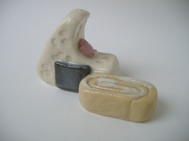 ***お知らせ*** 茂木町の一坪ショップの「3point3」は店じまいしました。これからは、手作りサイトの「minne」「Creema」「iichi」「メルカリ」に出品していますので、是非、そちらをご利用ください。ありがとうございました。----- 産地 -----お米:魚沼産こしひかり海苔:佐賀有明産梅干:紀州南高梅たまご焼き:栃木県産放し飼い有精卵----- レシピ -----ご飯部分:志野土を手びねりでコネコネして三角に、ご飯粒を押す。海苔:黒泥を薄く伸ばして四角に切って貼り付ける。梅干:カラー粘土を貼って、しわしわ感の模様を入れる。たまご焼:カラー粘土と志野土を混ぜた、たまご色の粘土を手びねりで コネコネして、厚焼き玉子形に。白身部分に志野土を塗る。透明釉掛けして1240度で焼き上げた100%手作りの陶器製箸置きです。----- 産地 -----お米:魚沼産こしひかり海苔:佐賀有明産梅干:紀州南高梅ウインナー:オーガニックあらびきウインナー-----レシピ -----ご飯部分:志野土を手びねりでコネコネして三角に、ご飯粒を押す。海苔:黒泥を薄く伸ばして四角に切って貼り付ける。梅干:カラー粘土を貼って、しわしわ感の模様を入れる。ウインナー:2種類のカラー粘土、赤土、並土を混ぜて、会心のウインナー色の粘土を手びねりでコネコネして、ウインナー形に。透明釉掛けして1240度で焼き上げた100%手作りの陶器製箸置きです。そら豆箸置きそら豆、柿、おにぎり定食(そら豆付)、〃(みかん付)、〃(谷中しょうが付)、〃(たくわん付)、〃(ウインナー付)、〃(たまご焼き付)、
