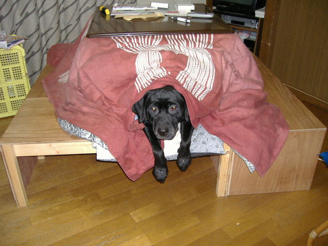 今頃になると栃木県茂木では、こたつの電源を入れるほど寒くはありませんが、寒さよけに電源を入れないコタツは必要です。我愛犬のノアちゃんの体温は38度位あり熱源として最適です。ノアちゃんにコタツへ入ってもらい電気代ゼロ円のエコこたつで、ヌクヌクです。