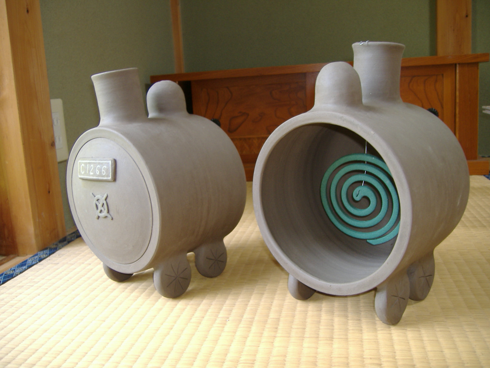 だいぶ遅れましたが、「真岡鉄道おみやげコンテスト」で最優秀賞を取った、「蚊取りSL C1266」が焼きあがりました。 『3point3』 ←ここをクリック 重連連結のSLを「道の駅もてぎ」の前を走るのを見ましたが、これは4連結です。
