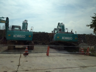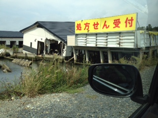 瓦礫処理は続いています。学校の校庭にて。コベルコさんのショベルカー。こないだ観た、反原発モノの映画のワンシーンで、コベルコさんの機器が悪の象徴的な描かれ方をしていて、機械屋の娘としては複雑でした。自由の女神像の近くにある古い教会。実は、日本で一番古い教会なんだそうです!長崎とかじゃないんですね~しかも、津波に呑まれても、ちゃんと残ったのがすごい。大きな立体駐車場。見た感じなんともなかったけど、これも撤去待ち。