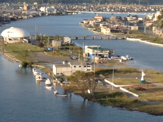 同じく、日和山から眺めた風景。元の様子を知らない私からすると、のんびりした港町、といった雰囲気。遠景の写真、右下に小さく見えるのは、自由の女神をかたどった像。この時はなんとも思わなくて、仲間と一緒に「震災後に建てられたのかね?」なんて、のんびり話していましたが、翌朝、近くを案内していただいたときに、その像のカラダ半分が、津波で削られたことを知ることになる。