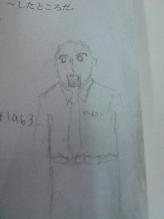 僕の学校では週に一度OC(英語)の授業でブライアン先生が来ます。面白いです。その面白さは業となのか素なのか気になるところです。学校にケータイ持っていってはいけないので(マジめです。いや勇気が無いだけ)僕は持ってきてないので授業中さらさらととり合えず絵を書きました。載せときます。他の学校にも生息していたら教えてください。(なんとなく)
