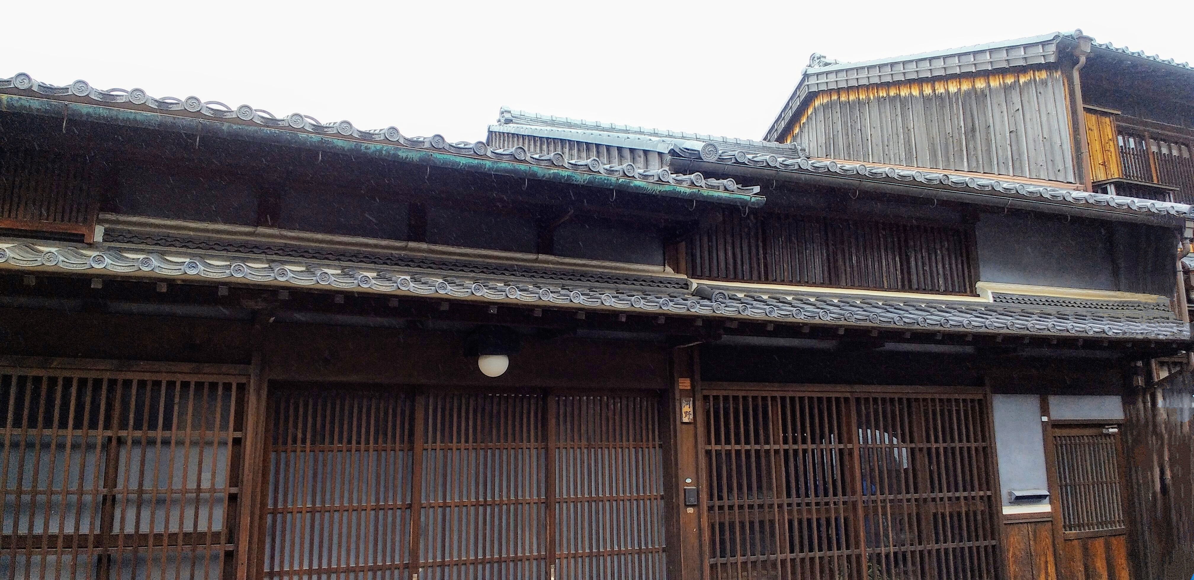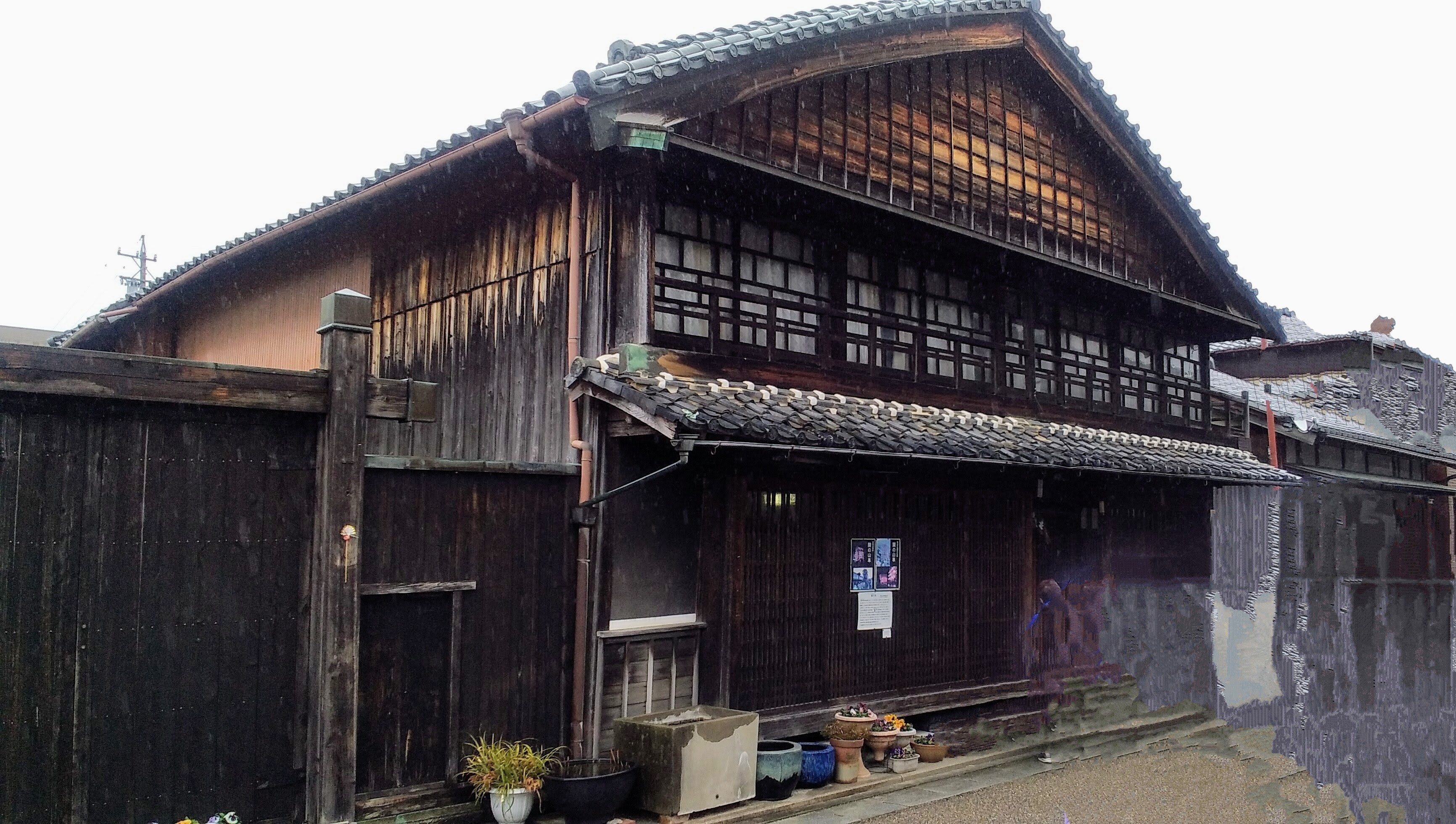 関宿は概ね二階建てで一階の格子と二階の虫籠窓