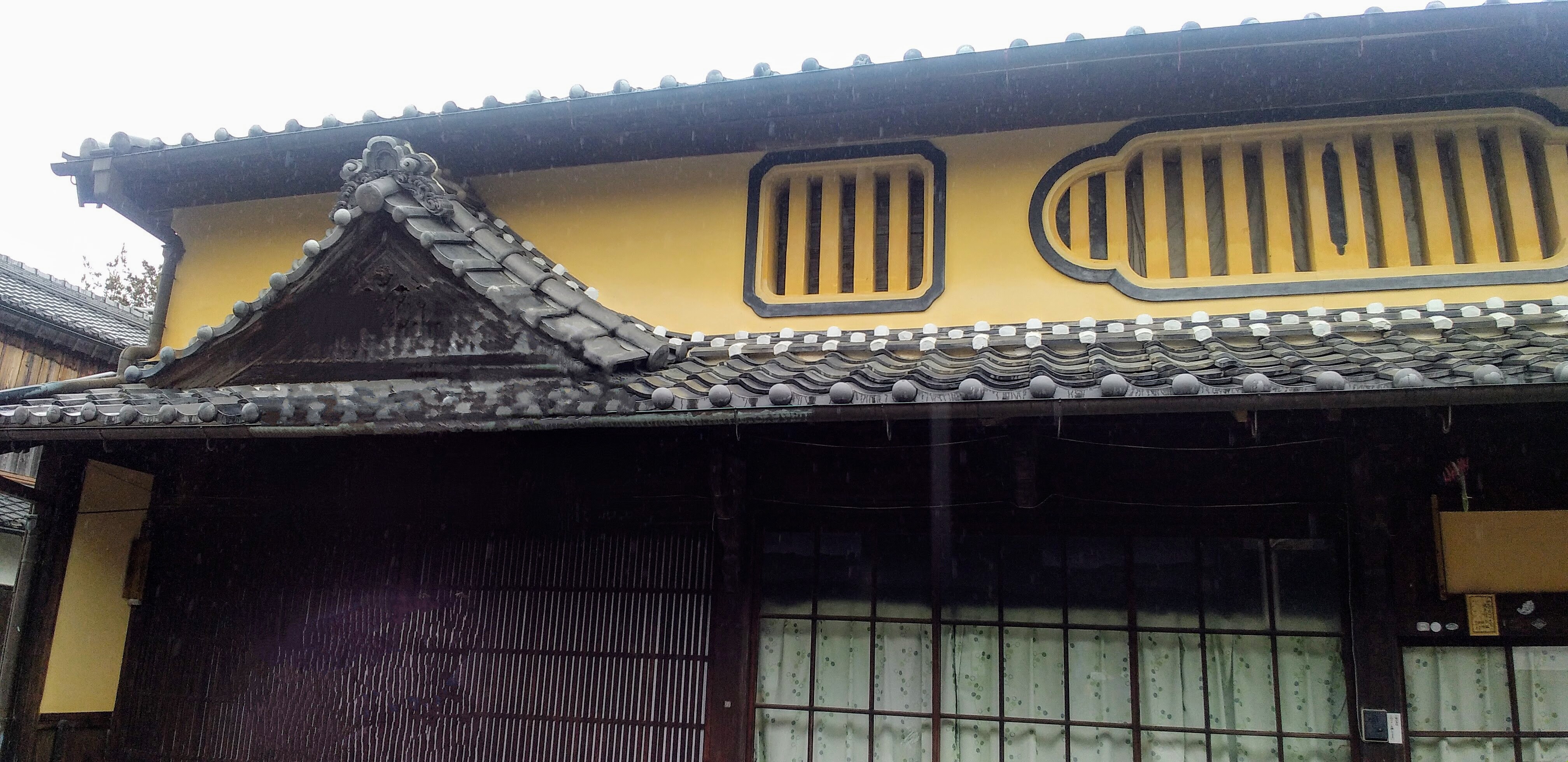 左右非対称の外壁の窓は江戸時代の建物とのことですが、この家は新しく見えました。