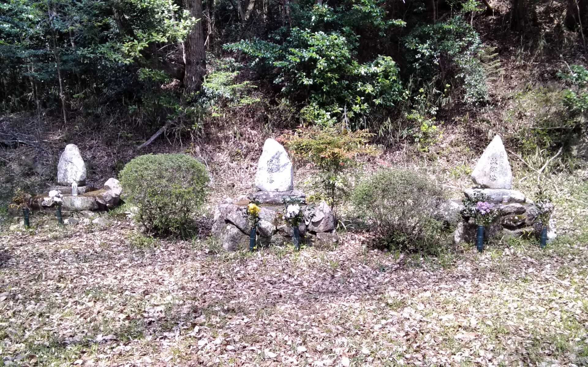 右から服部半蔵の故郷塔 藤堂釆女供養塔 伊賀乱横死者供養塔