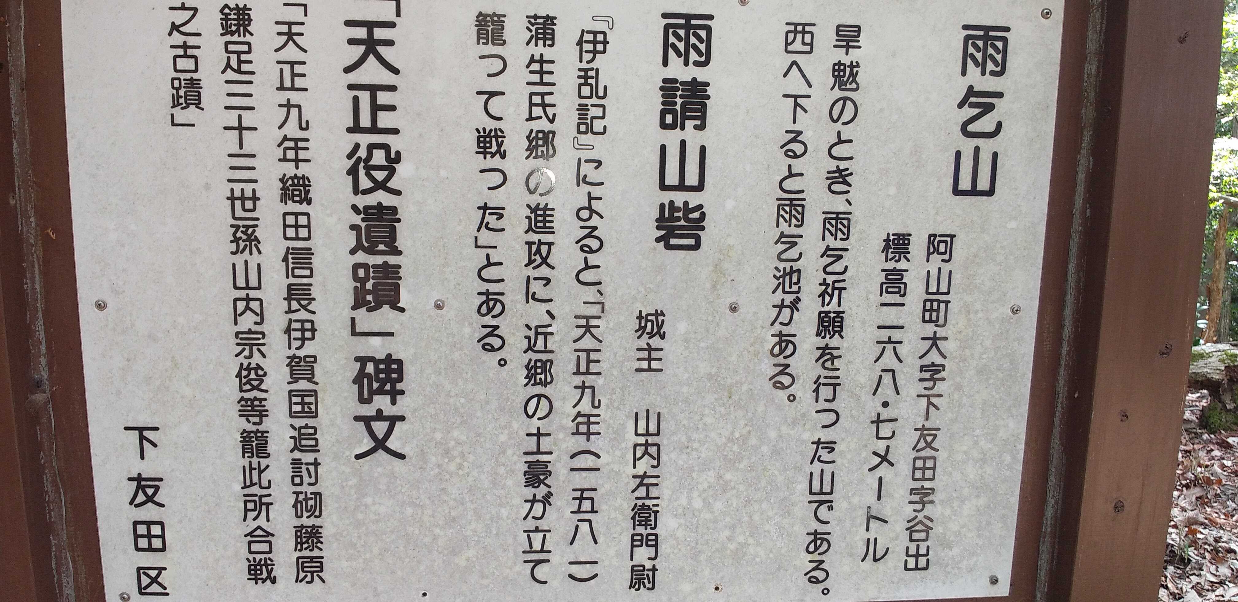 雨乞山 伊賀市 天正伊賀の乱 戦闘地