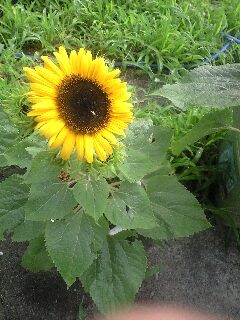 雨降りの朝ですよ。ひまわり こんなに 成長していますよ。「ミラクルビーム」ですよ。 咲いたら こんなに なるかなあ? o(^-^)o ? 今日は 土曜日ですが 仕事 出かけできますよ。
