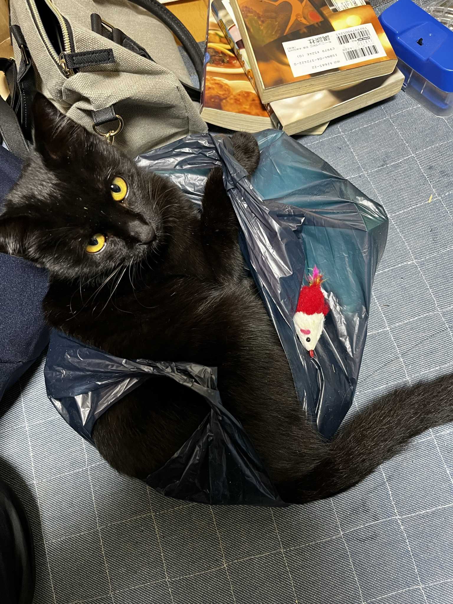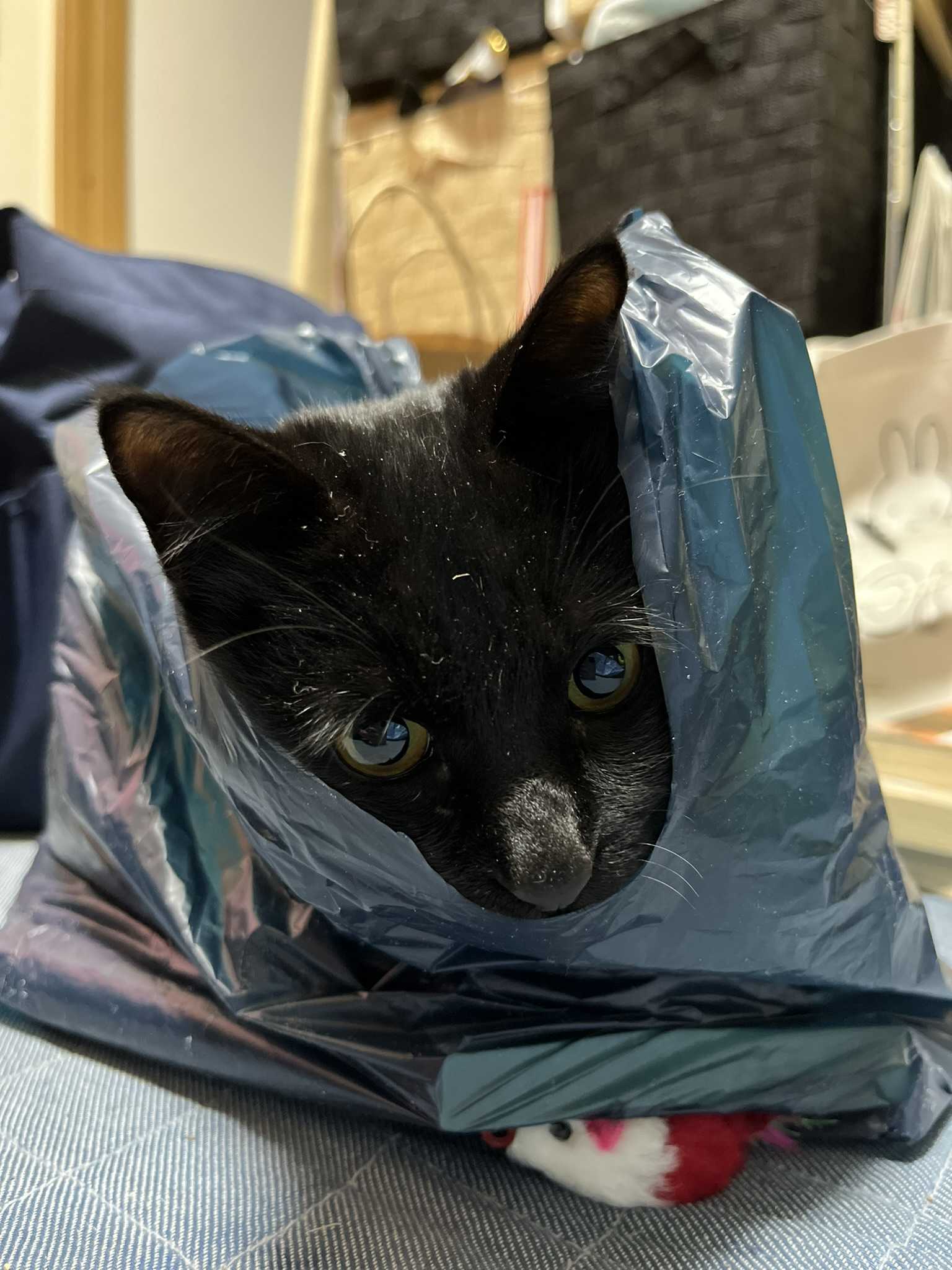 袋が好きでどんなんでもとりあえず入りたがるうちの猫