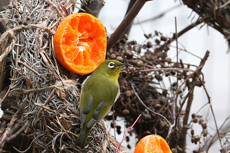 (本日更新その1)今日は週末、お庭で観察した毎日えさ場にやって来る「メジロ」です。この日は、大好物のみかんを沢山食べて満足顔でした。〇毎日みかんの入った鳥かごに入ってきます。(いたずら者のヒヨドリは通れません。)メジロ1IMG_1522 posted by (C)328手持ちのまっちゃん〇ペアでみかんをお腹一杯食べます。メジロ2IMG_1512 posted by (C)328手持ちのまっちゃん〇食べ終わったら隙間から出てきます。メジロ3IMG_1521 posted by (C)328手持ちのまっちゃん〇お腹が一杯になったのでペアで満足顔で一休みです。メジロ4IMG_1662 posted by (C)328手持ちのまっちゃんメジロ5IMG_1535 posted by (C)328手持ちのまっちゃん