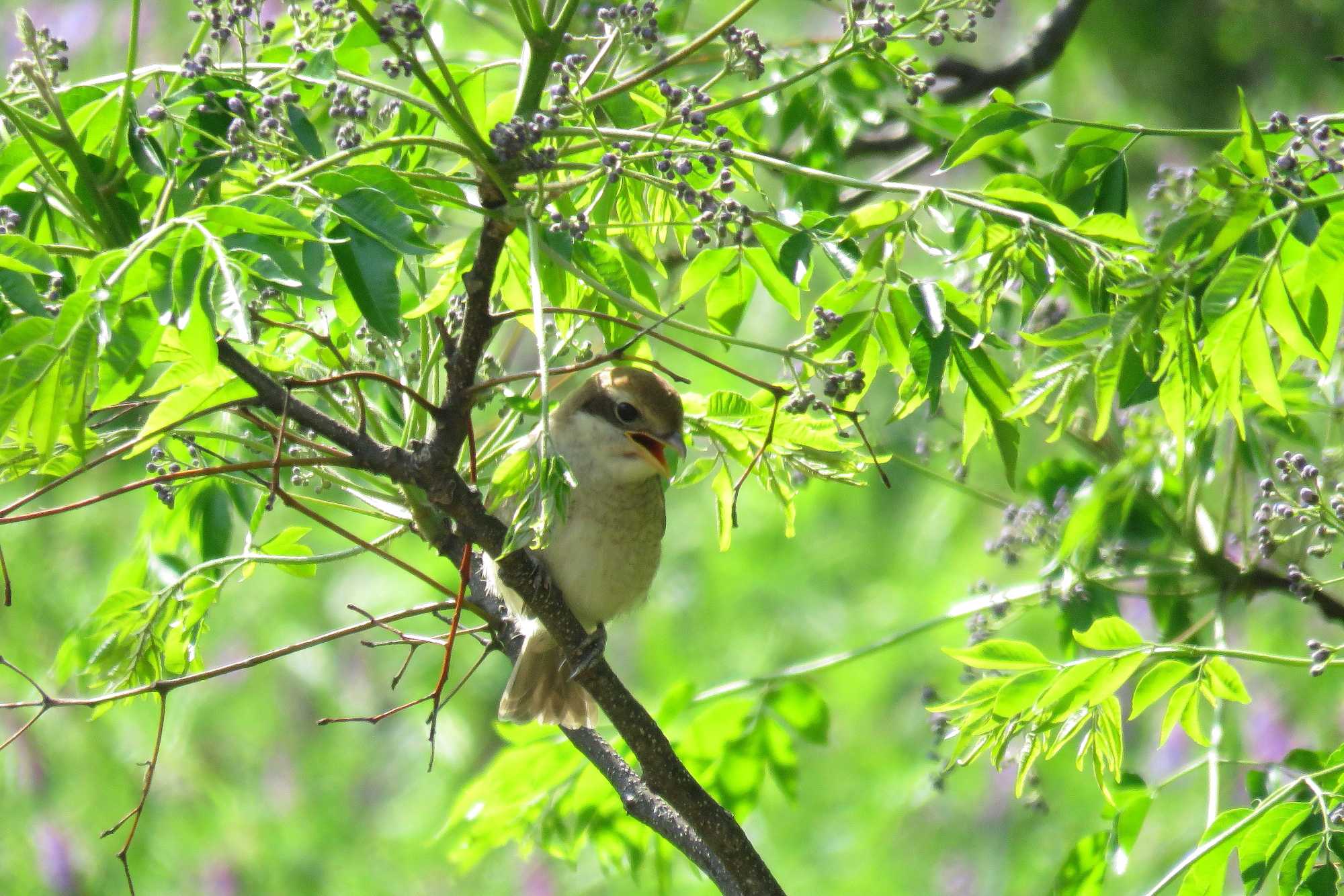 ☆和泉市コミュニティファームのセンダンの樹で観察した「モズ幼鳥」