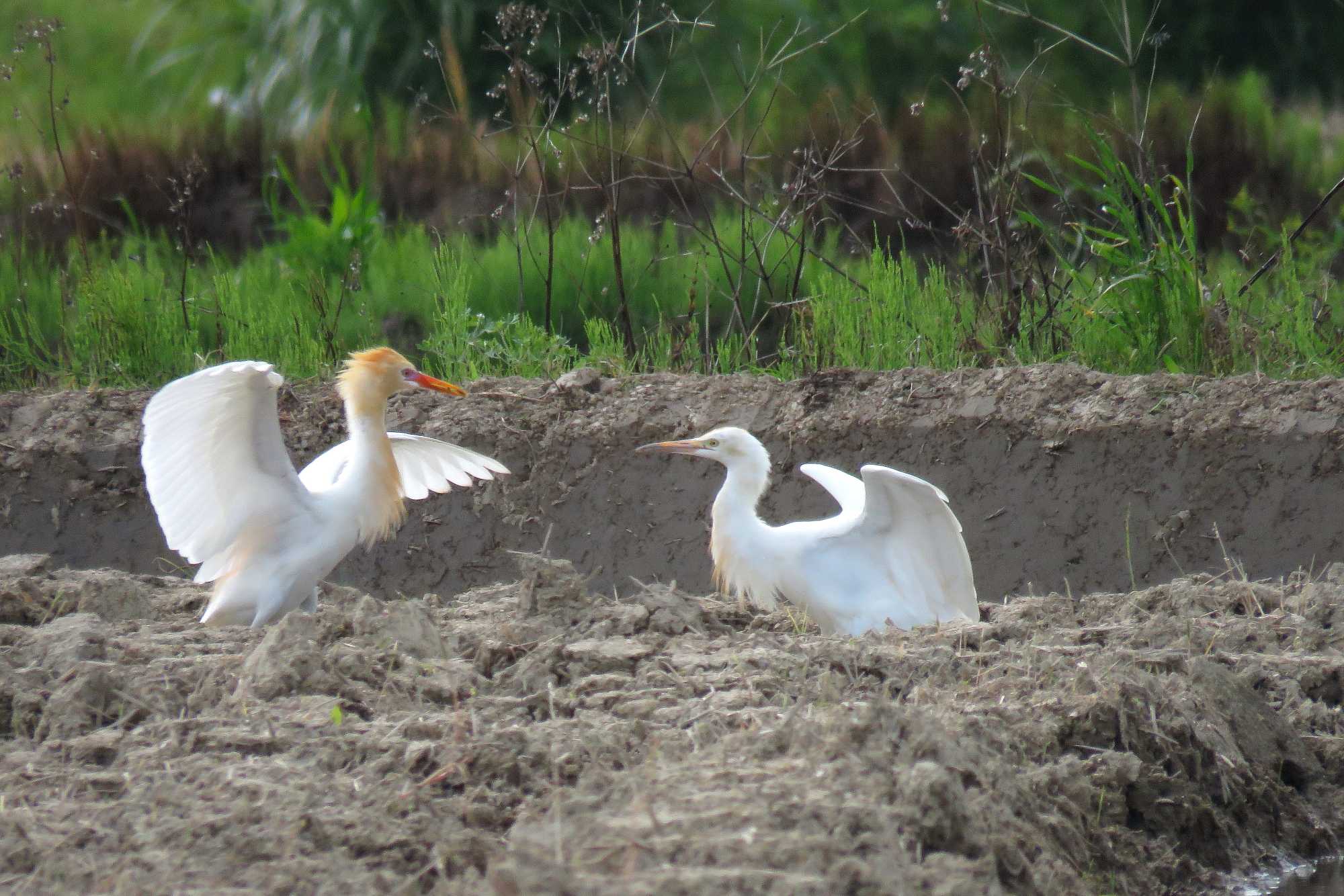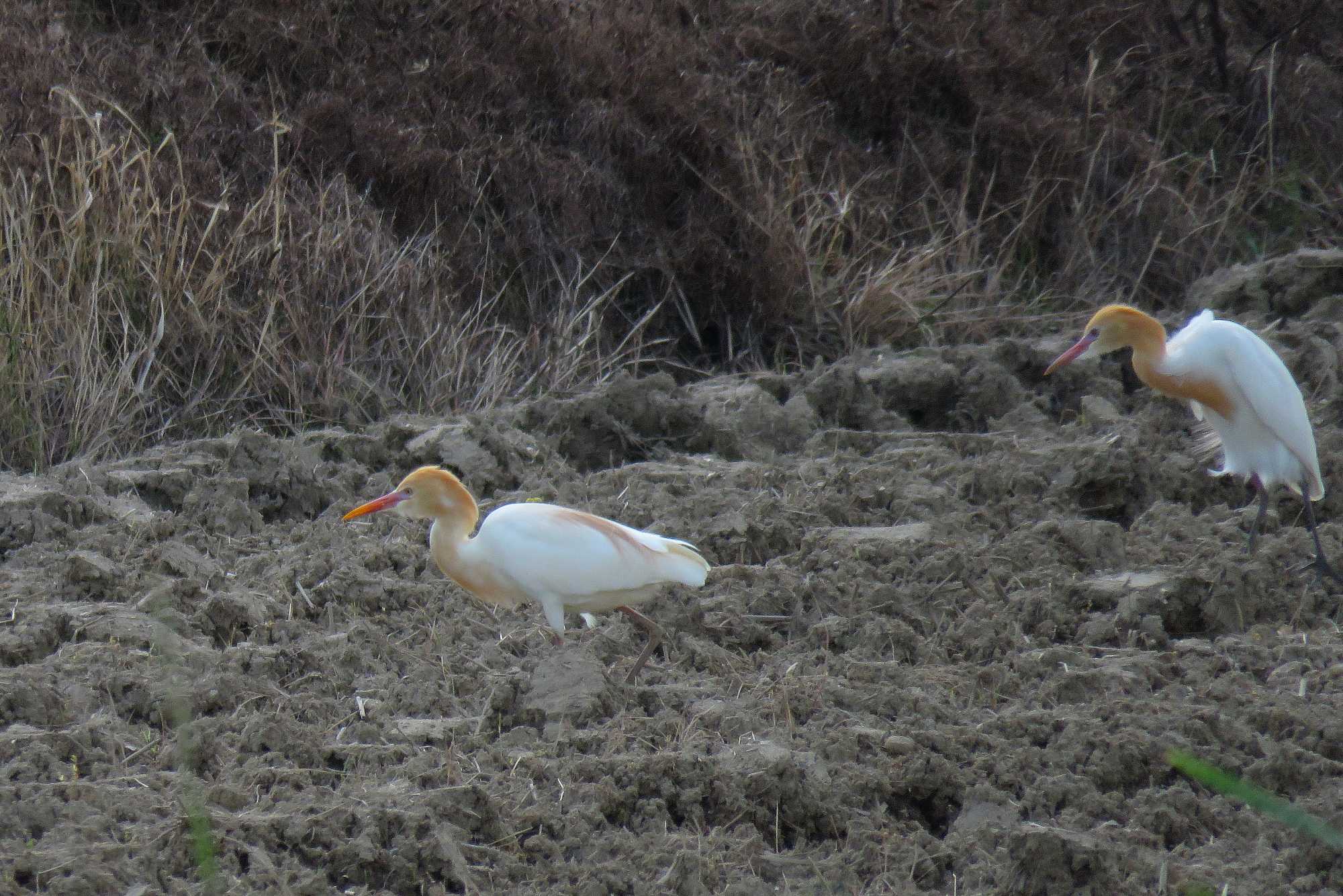 (本日更新2)近所の農園で滞在5日目となる「アマサギ」で、今朝は5羽で昨日は4羽を確認しています。画像は昨日ふうさんが撮影したものです。