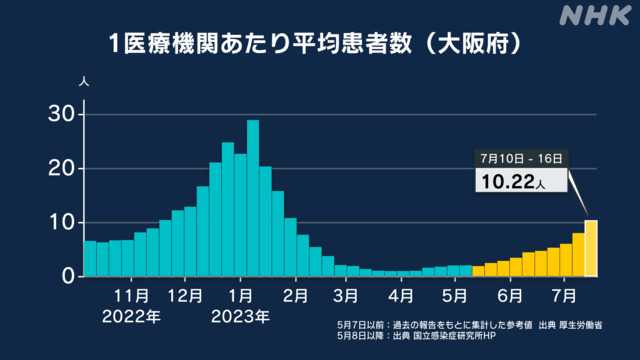 <大阪府の1医療機関あたり平均患者数(NHKのサイトから抜粋)>