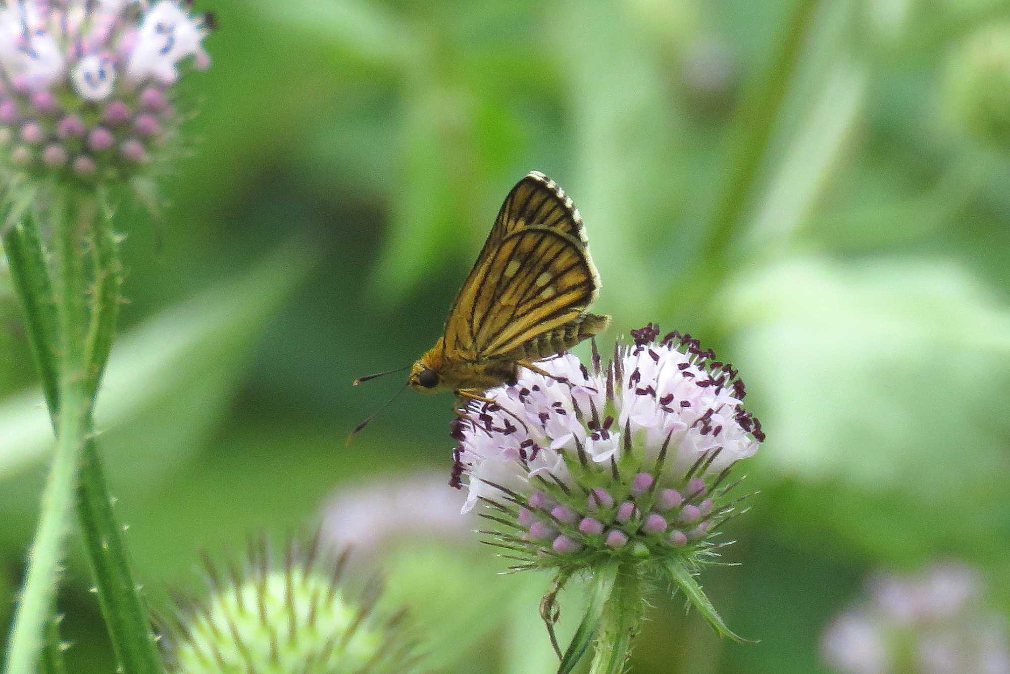 和泉葛城山の展望台付近で咲いているセイヨウマツムシソウの花の吸蜜に来ていた「オオチャバネセセリ」と「コチャバネセセリ」です。