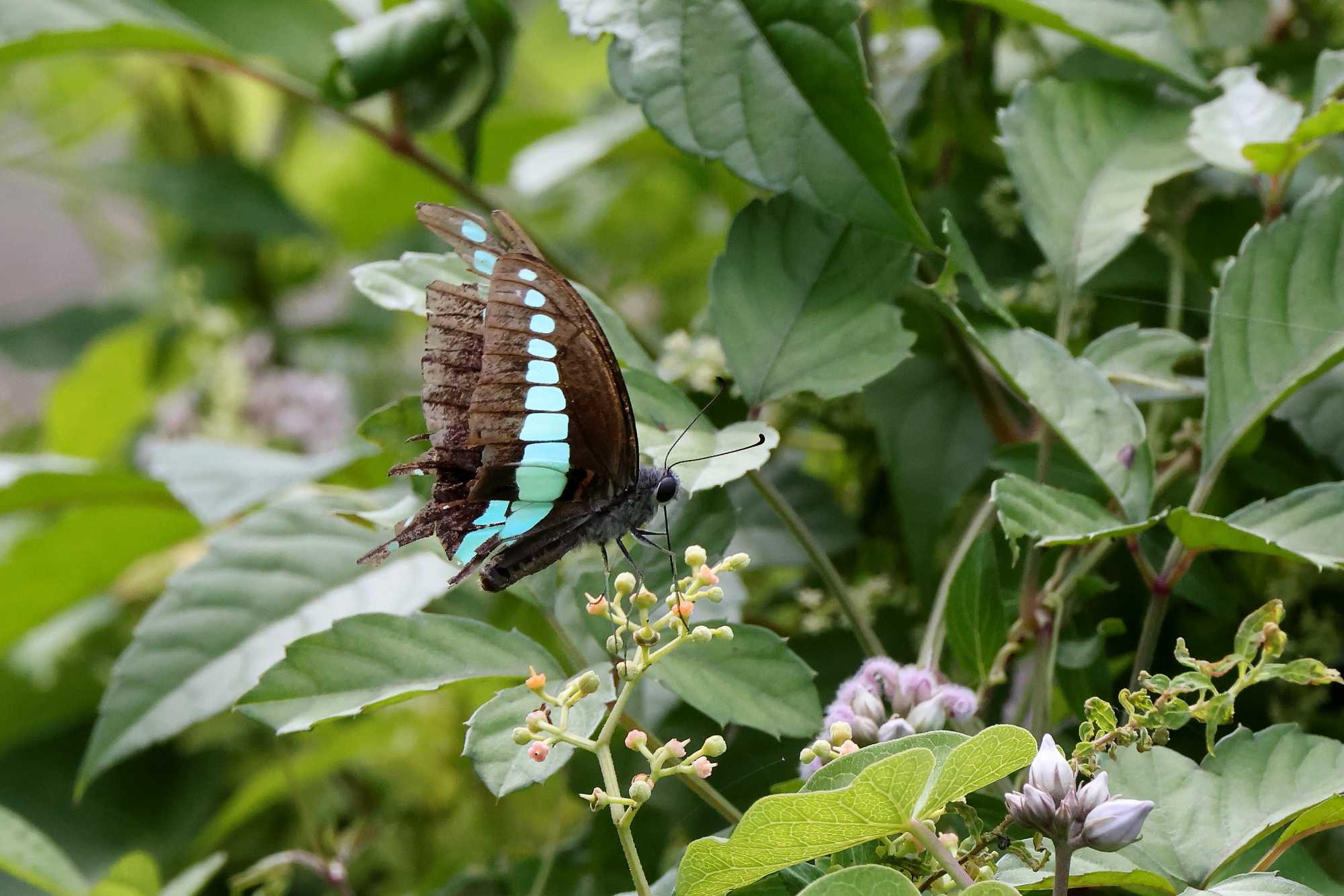 ☆岩湧の森お庭でヤブガラシの花の吸蜜をする「アオスジアゲハ」