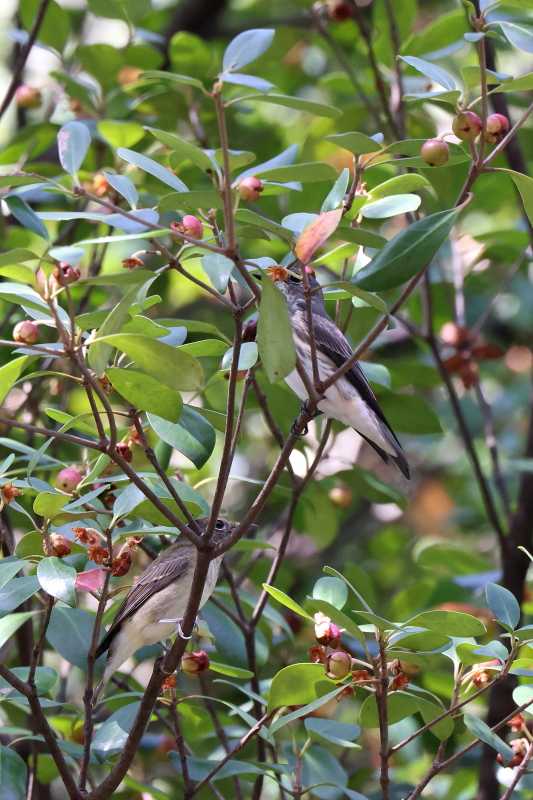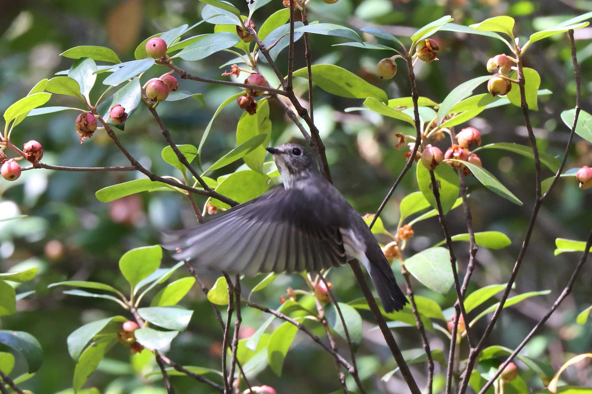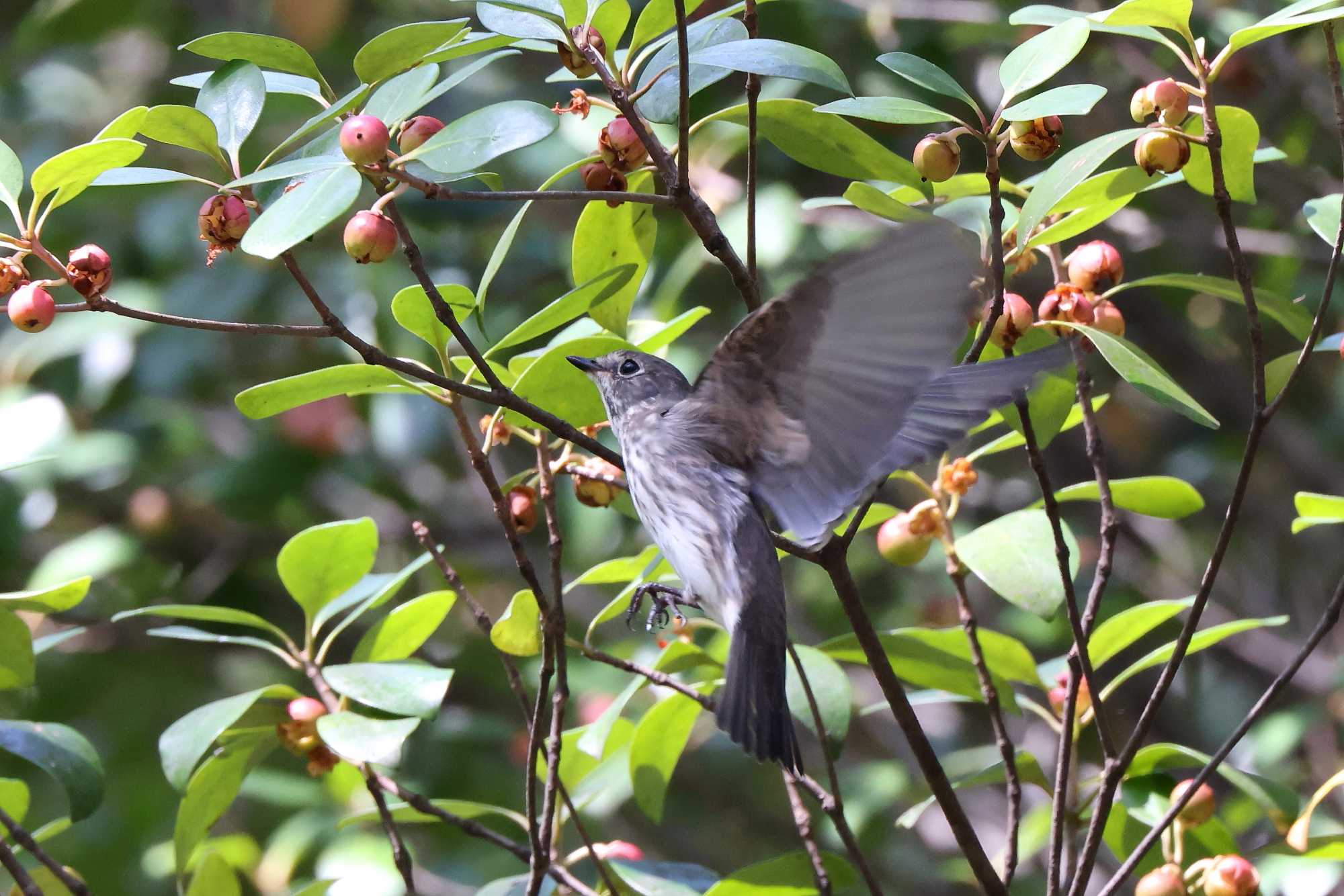 ☆堺市の府営公園で撮影したモッコクの実の採餌に飛び交っていた「エゾビタキ」