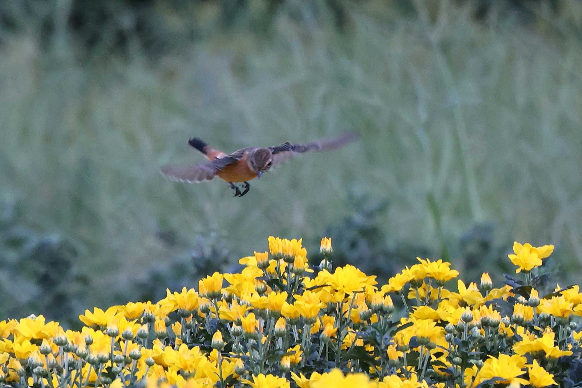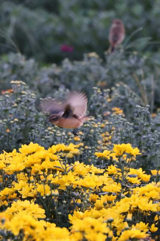 (本日更新2)生駒山麓の菊畑で、昨日の夕刻前にやっと撮影できた「菊ノビタキ」です(^-^) 昨日、菊絡みのノビタキが撮りたくて、午後遅くが良かろうと14時半に到着したところ、3羽のノビタキが確認できましたが、なかなか咲いている菊に留ってくれずで、諦めて帰ろうとしたところ、やっと16時半ころから動きが出始め、徐々に満開の菊畑に近づいてきて、17時ころから夕刻前までの30分ほど菊畑の上を虫を探して飛び交ってくれました^^ ふうさんバージョンは、別途アップします。 ※Canon EOS R5+RF100-500mm F4.5-7.1L IS +1.4x 三脚撮影