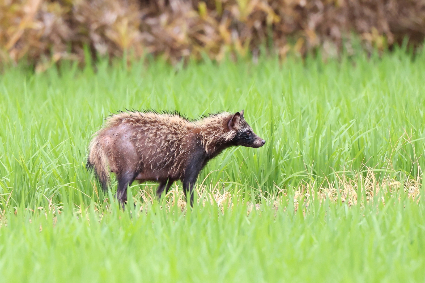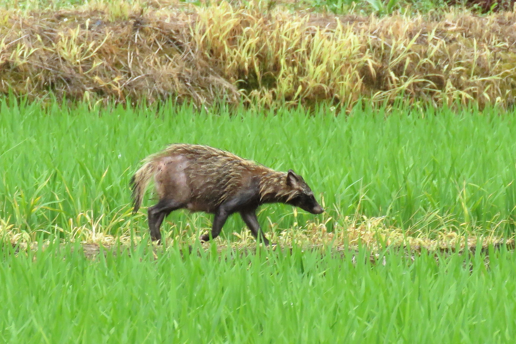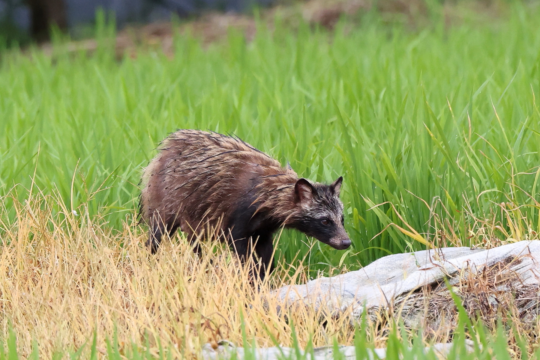 ☆和泉市コミュニティファーム付近の畦道で出会えた「ずぶ濡れのタヌキ」