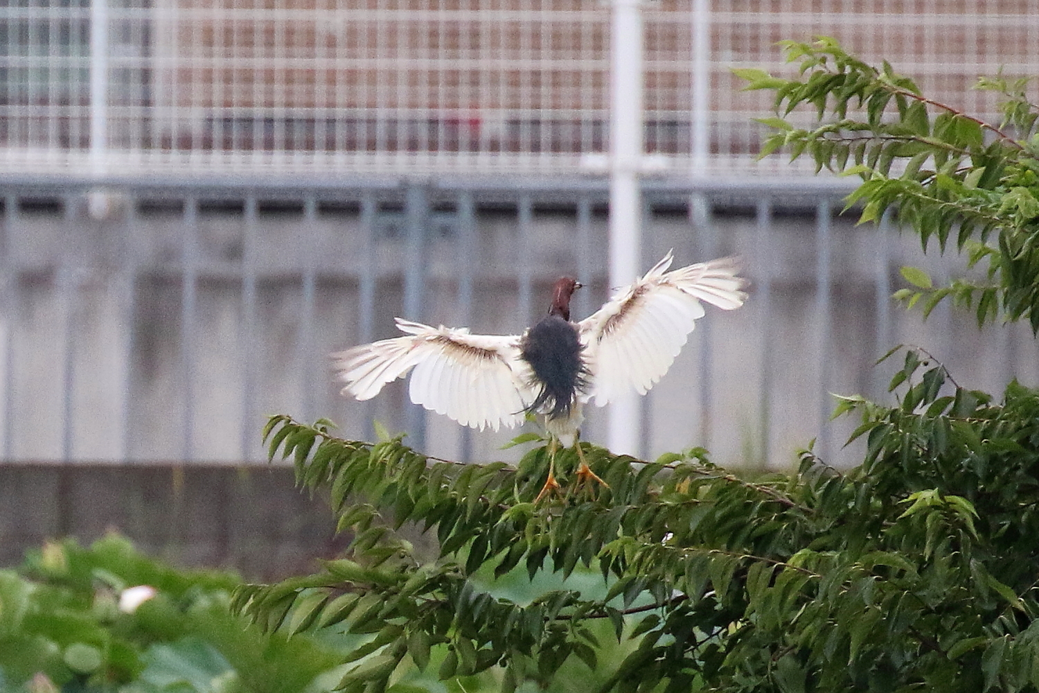 大泉緑地公園の近くの池で、長期滞在中の珍鳥の「アカガシラサギ」の、ふうさんバージョンです(^-^)