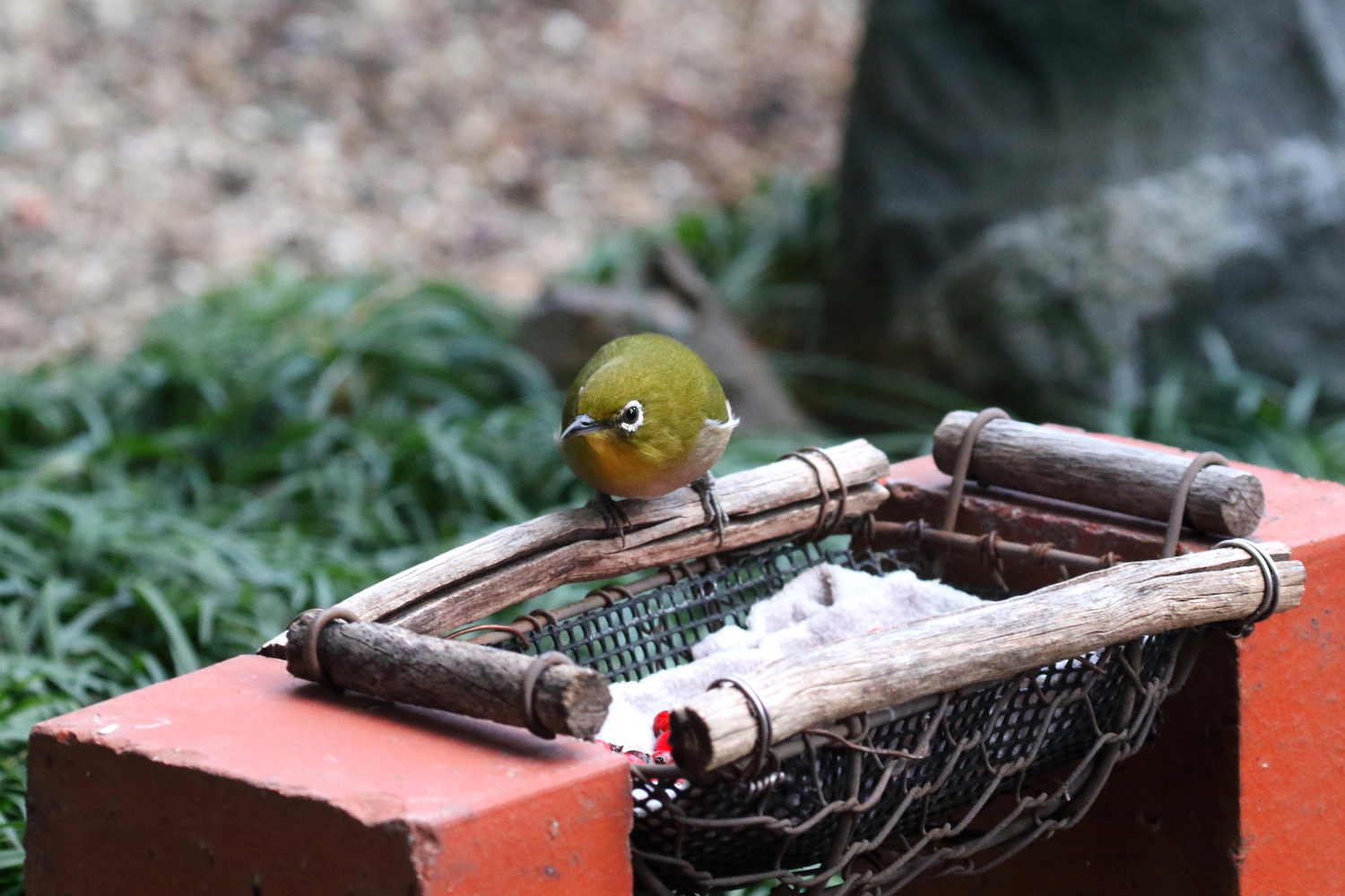 ☆お庭のエサ台にやってきて採餌するのを諦めた「メジロ」