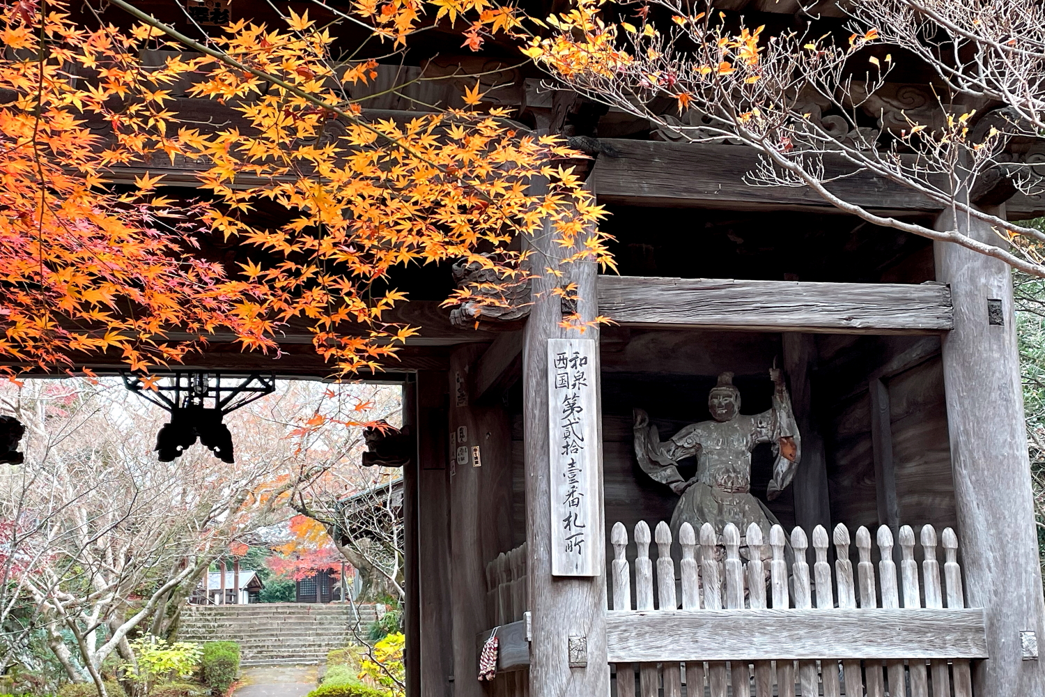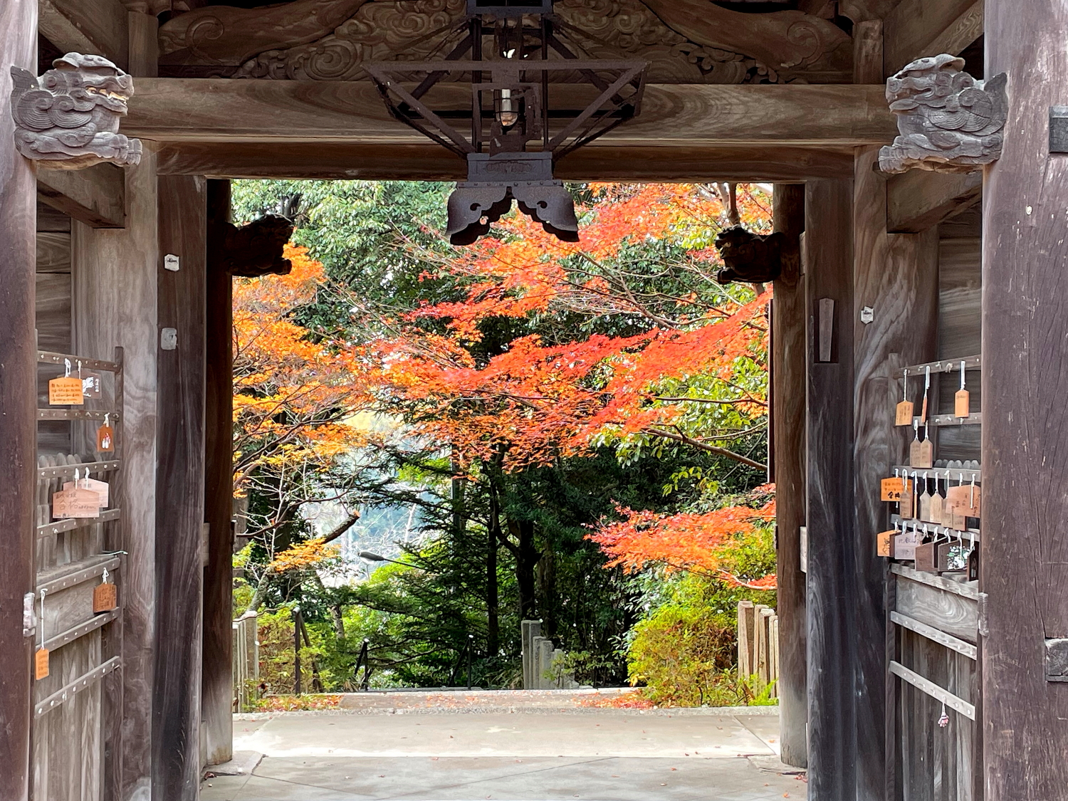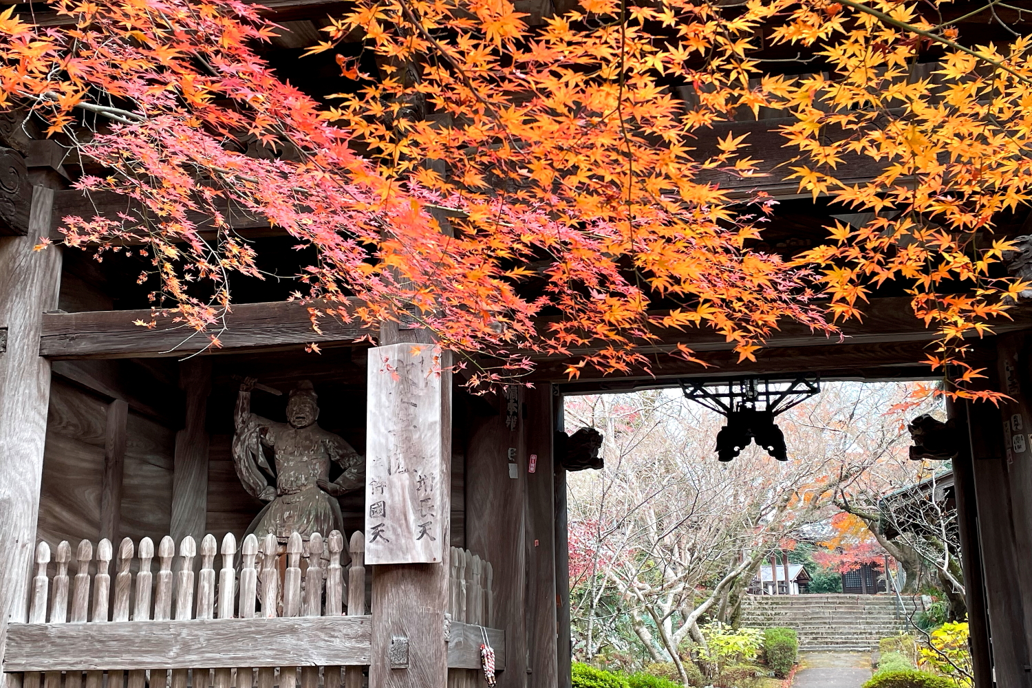 ☆紅葉が最終盤で色づきが残っている「松尾寺山門付近の紅葉」