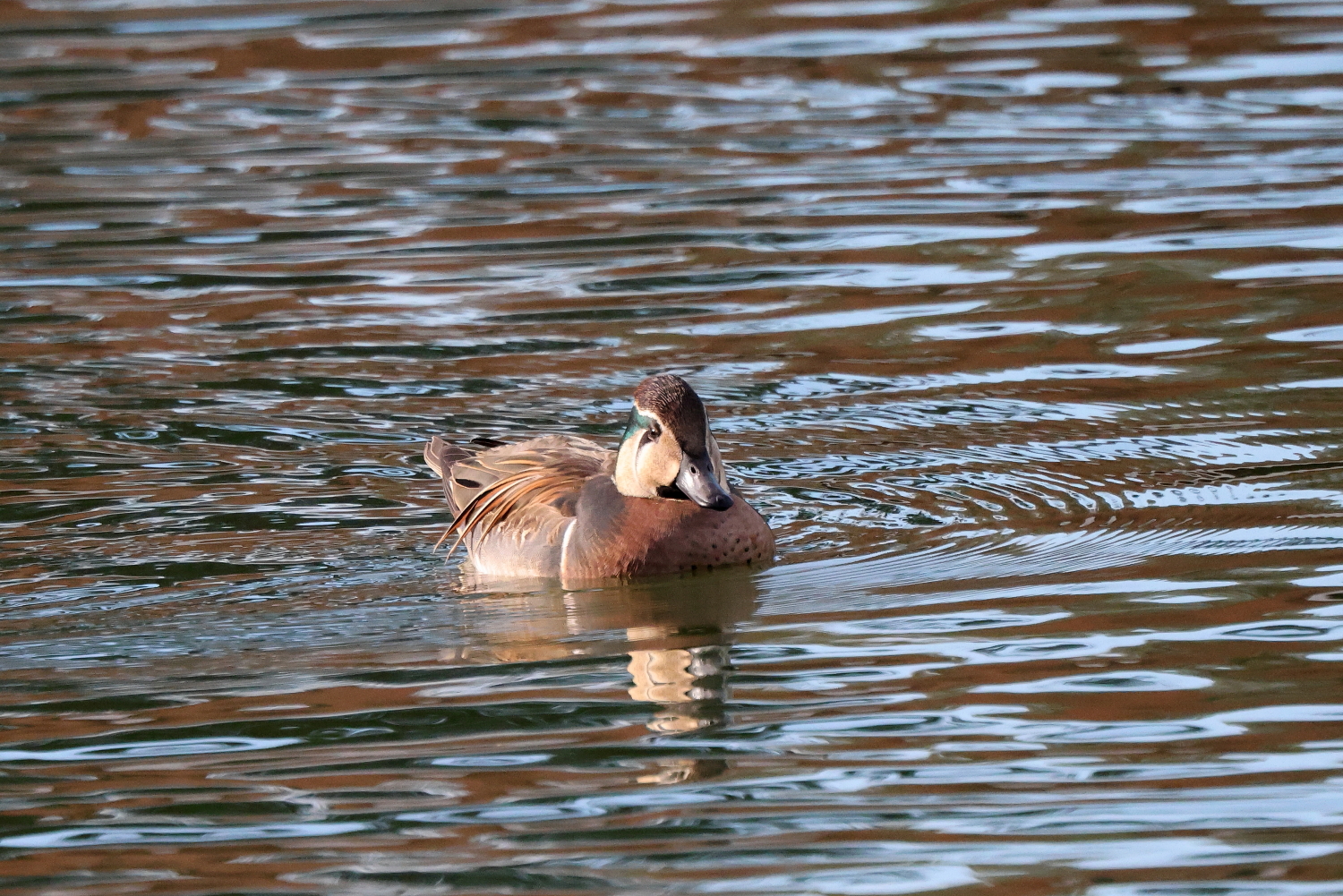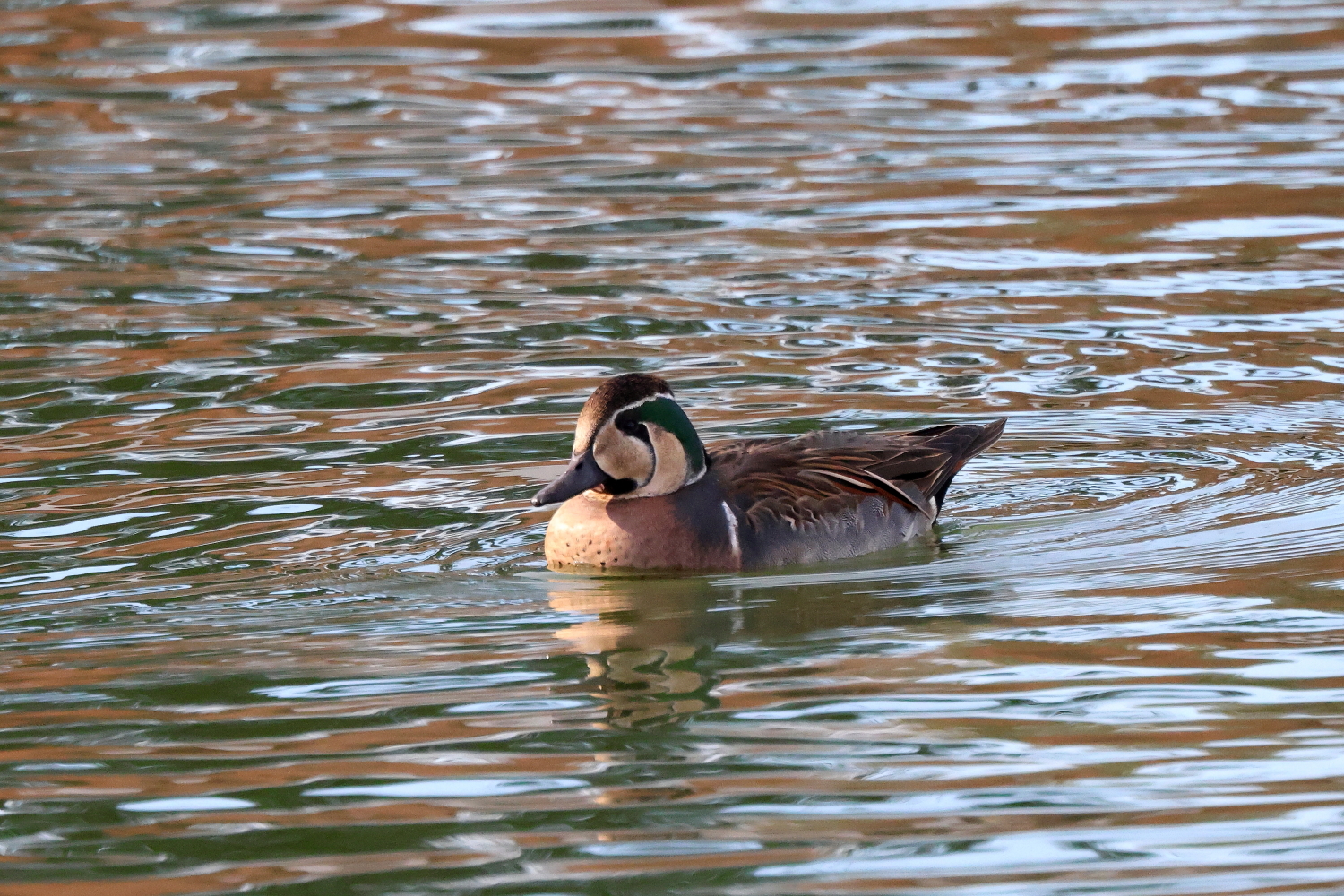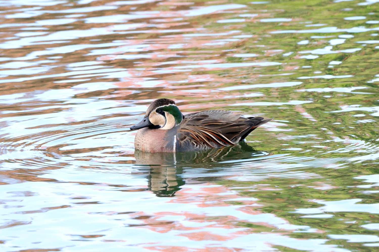 岸和田の府営公園でヒドリガモに混じって、近づいても逃げない愛想の良い「トモエガモ」が撮影できました(^-^)