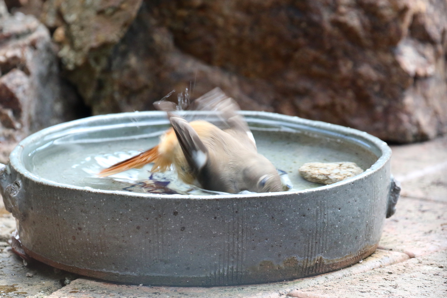 ジョウビタキ♀水浴び(2)044A4423