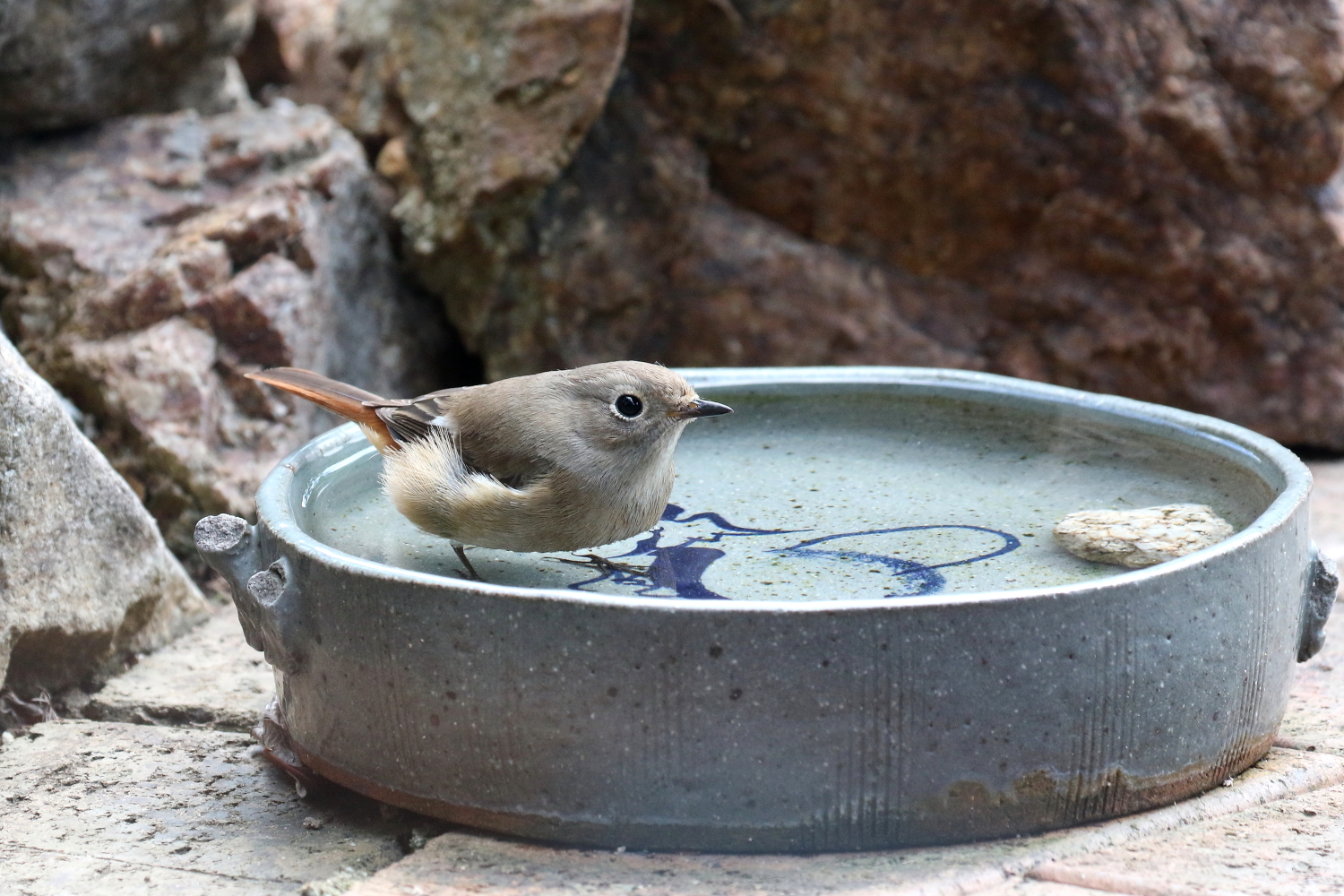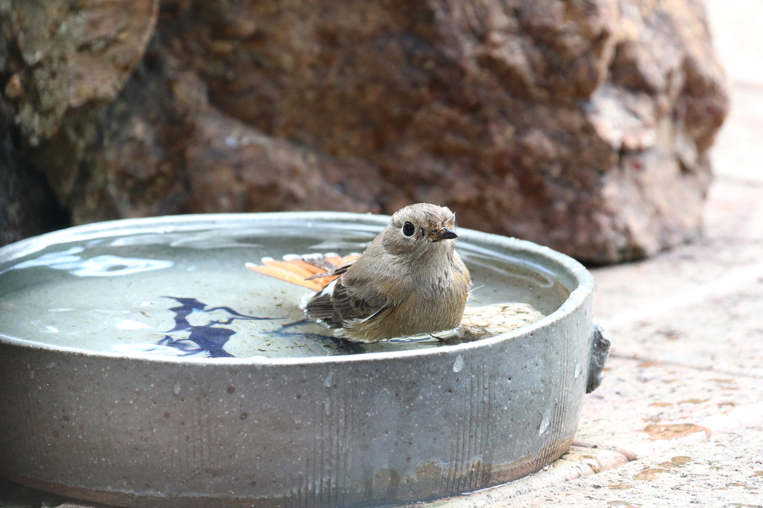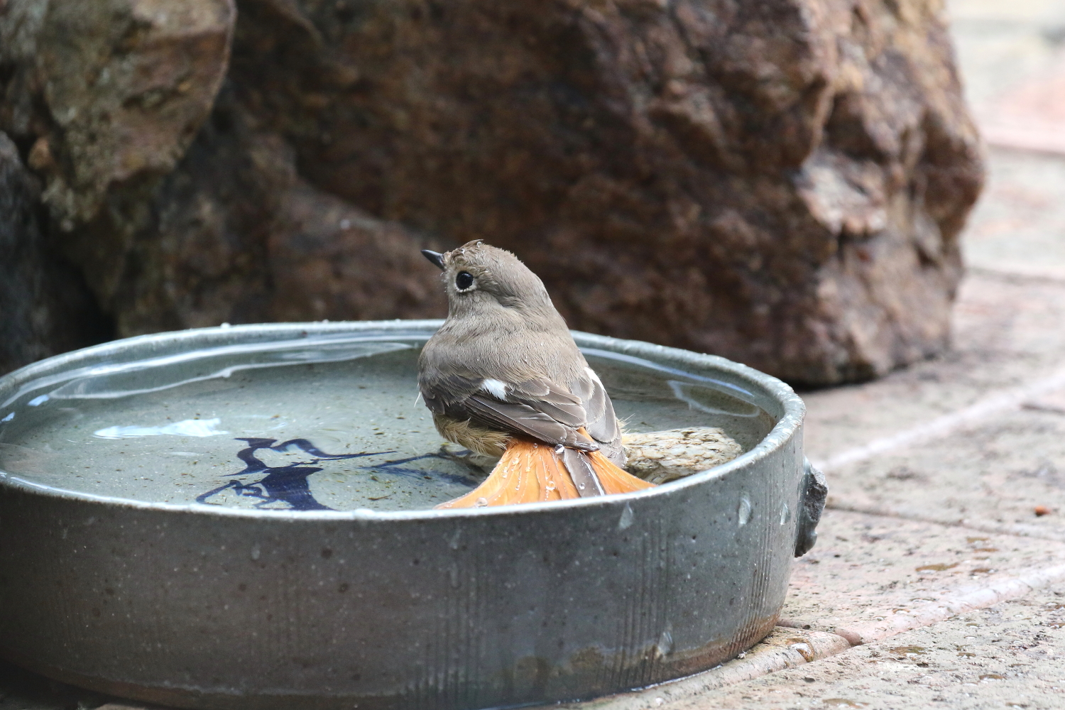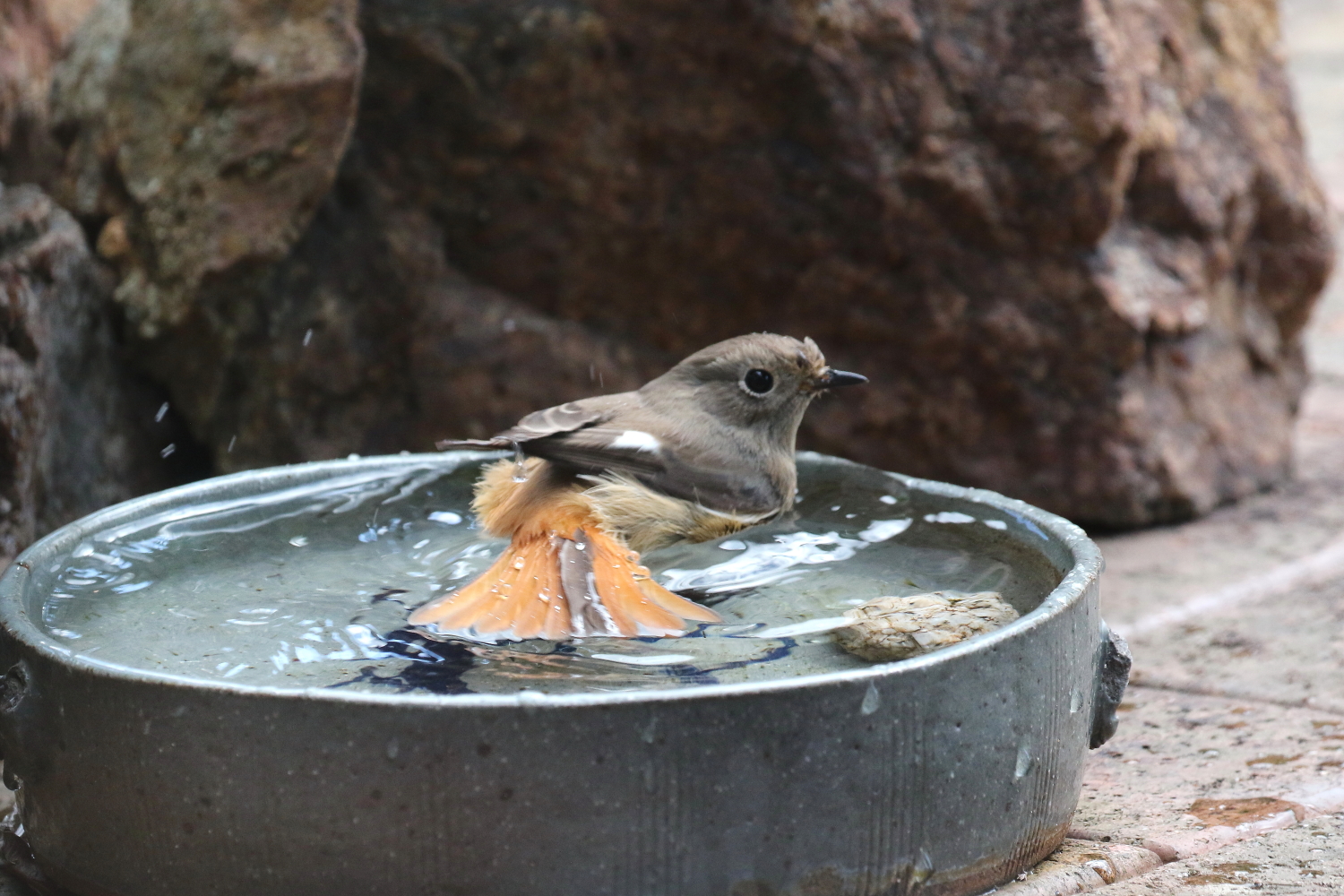 ☆お庭で冬の寒い日に平気で水浴びする「ジョウビタキ♀」