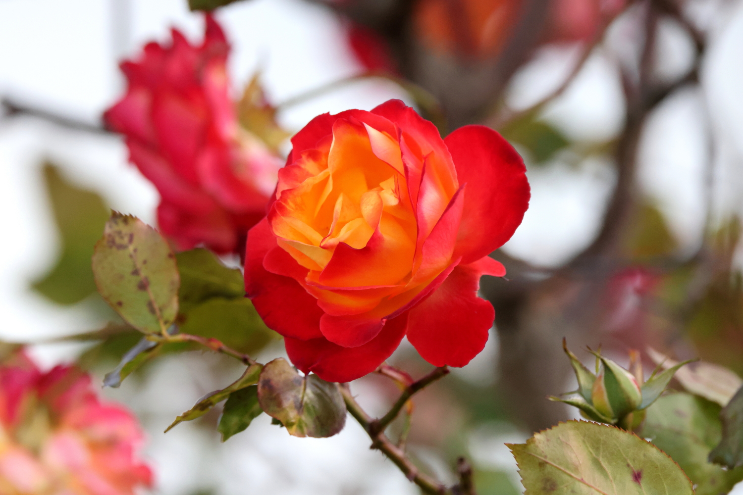 ☆リサイクル環境公園で大寒波の中でも綺麗に咲いていた3色咲きの薔薇「ふれ太鼓」