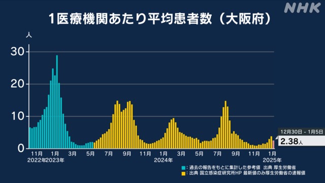 (参考:インフルエンザ大阪府平均67.53→25.36人)