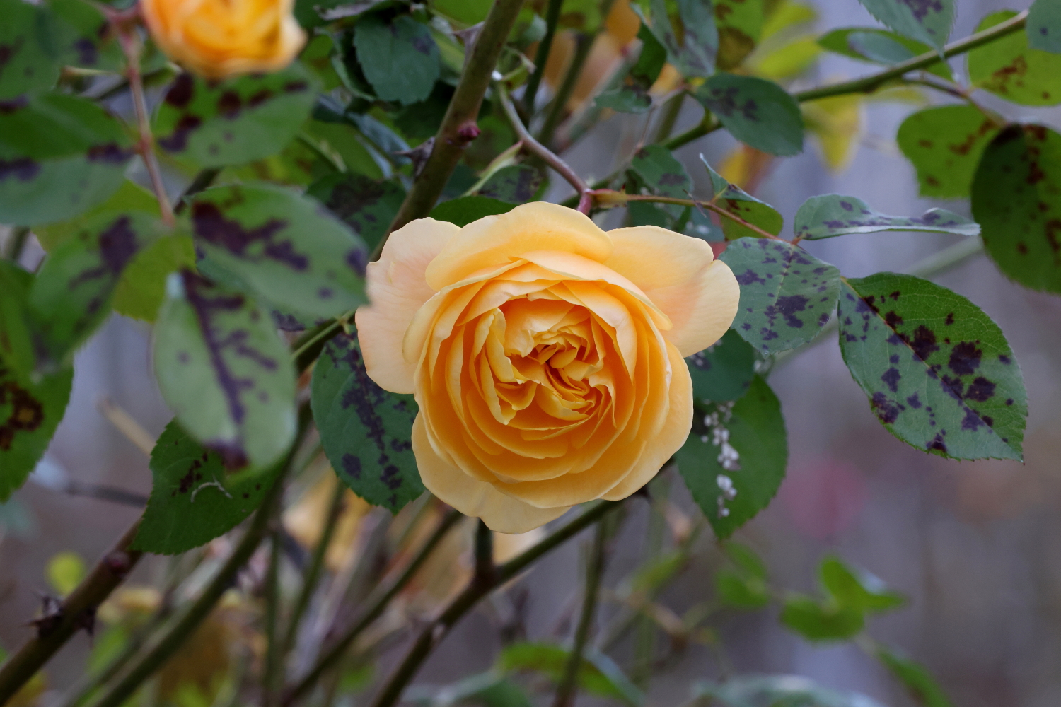 ☆河内長野市の府営公園で寒さの中で咲いていた薔薇「グラハム・トーマス」