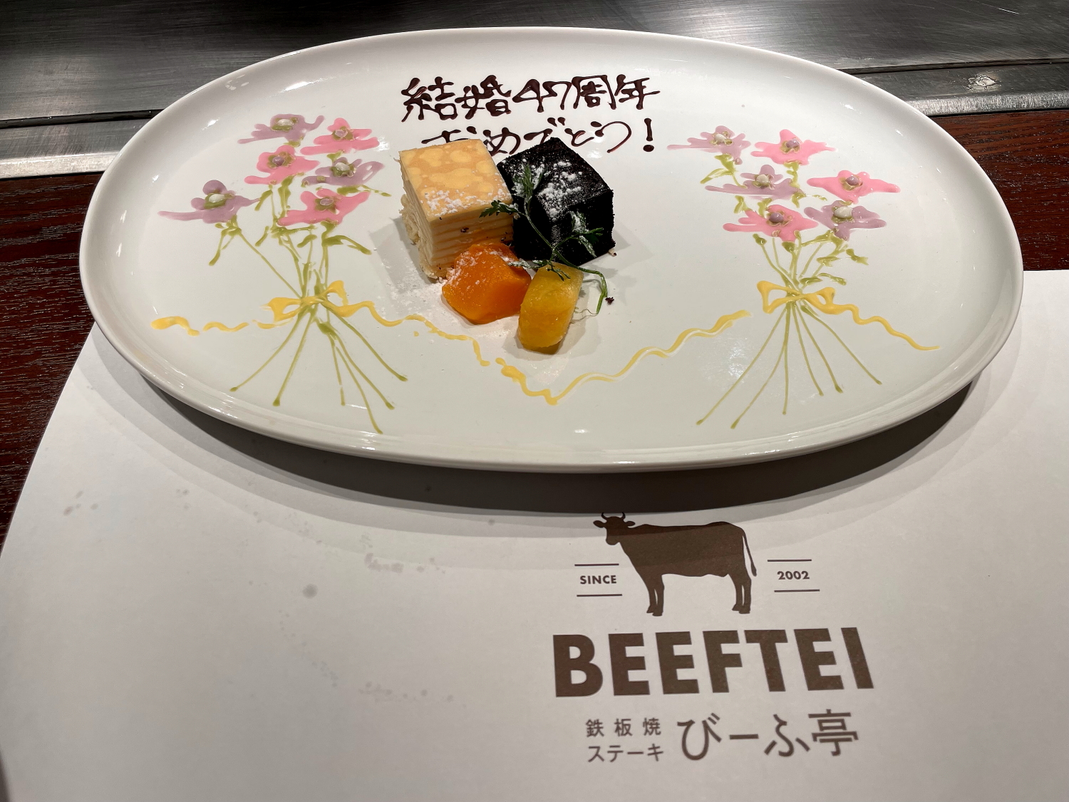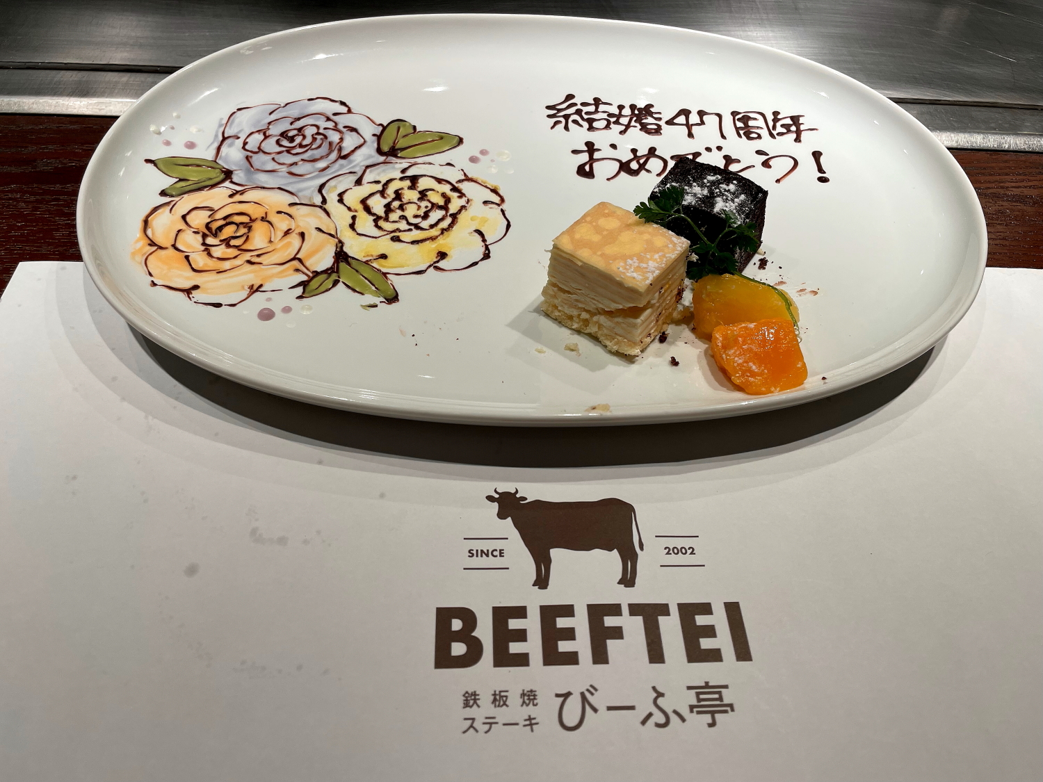 (本日更新2)今日は夕刻から大阪難波で旧友との食事会なので、先日の結婚記念日にふうさんと近くのビーフ亭和泉中央店で、肉料理のコースを味わった時の記録です(^-^)