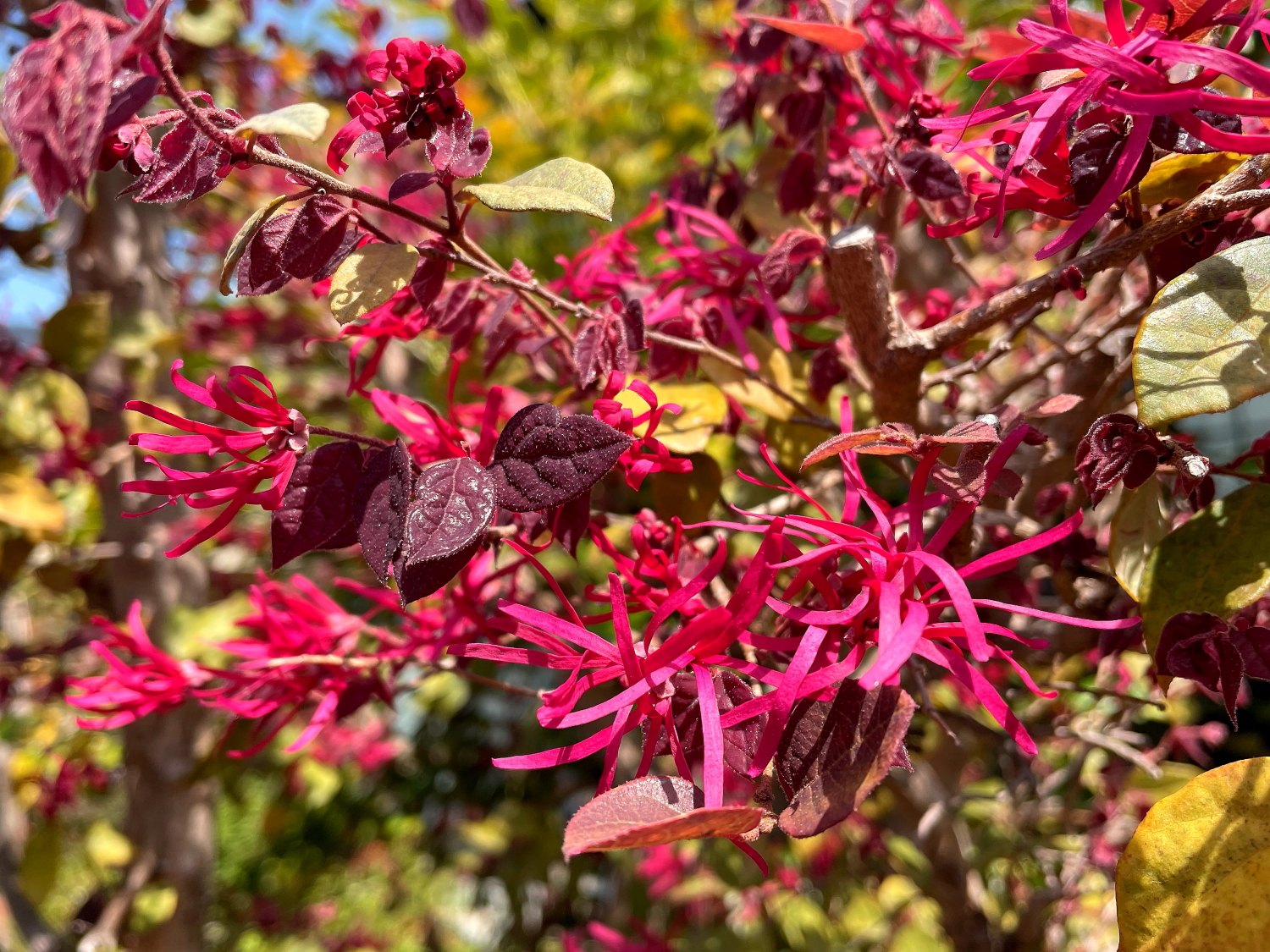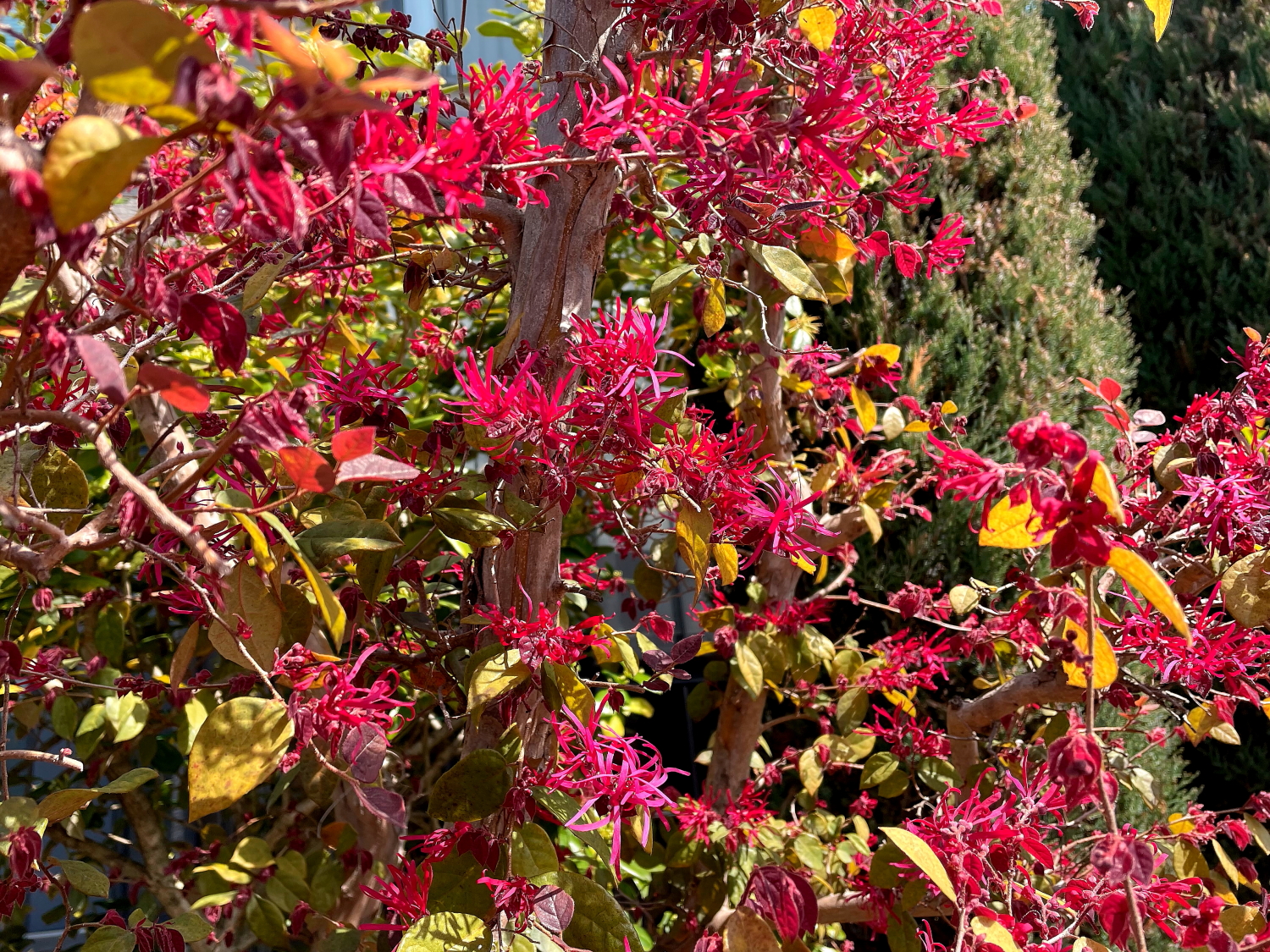 ☆お庭で真っ赤に咲き誇っている四季咲きの「ベニバナトキワマンサク」
