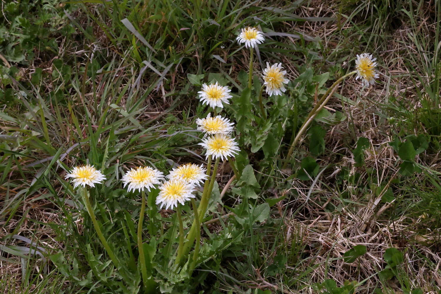 ☆丹波市カタクリの里近くの農園で珍しく群生して咲いていた「シロバナタンポポ」