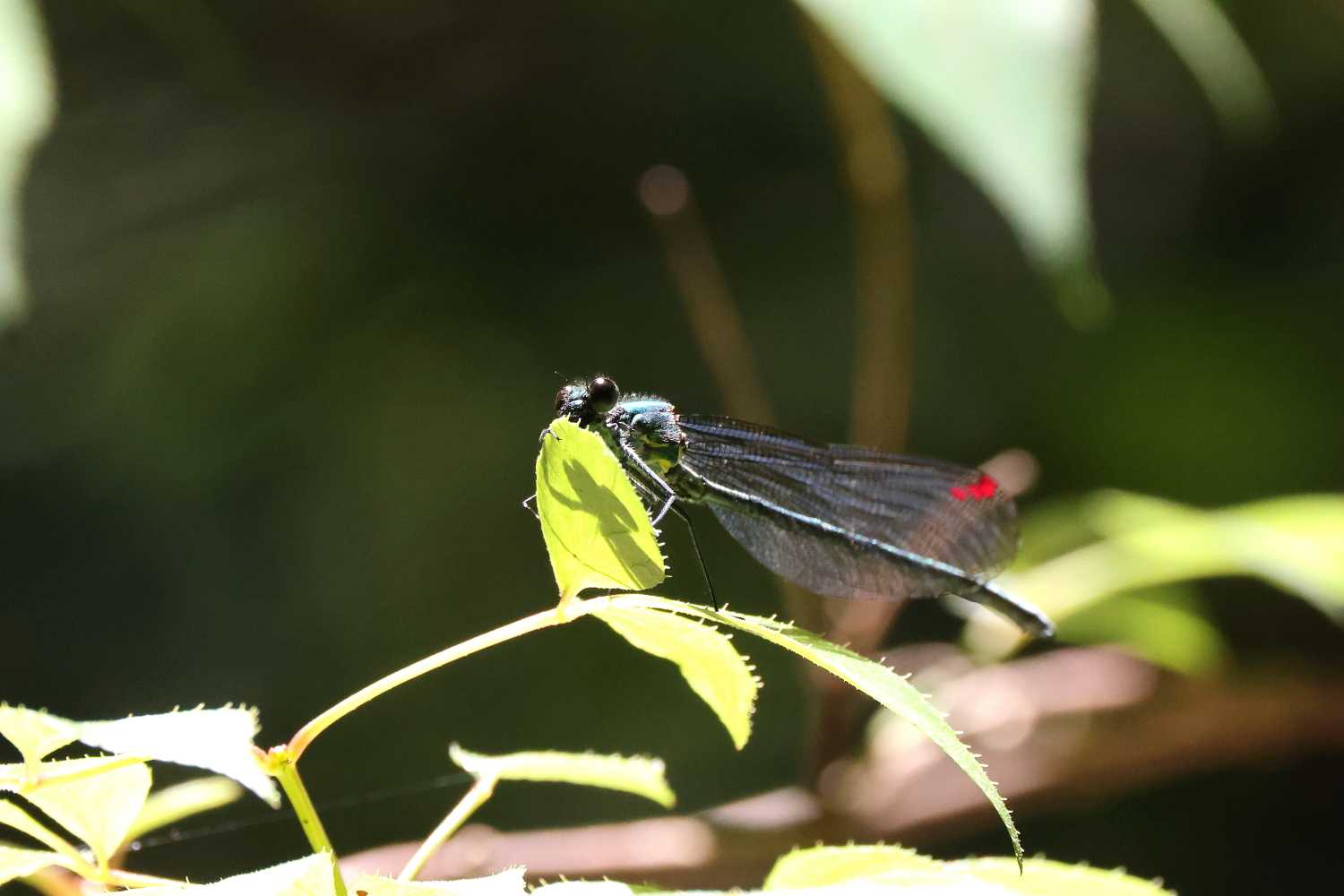 (本日更新2)金剛山麓の沢沿いにたくさんいた「ニホンカワトンボ」で、すぐ横では「ミソサザイ」が、大きい声で囀っていました(^-^)