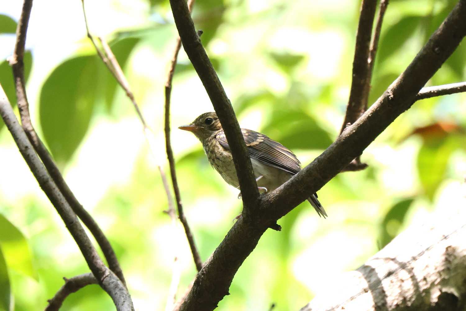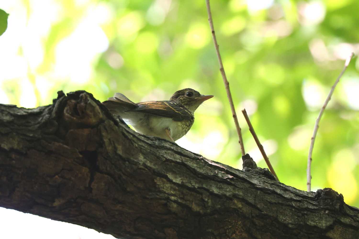 堺市の府営公園では、過去にもキビタキが営巣していたようですが、「キビタキの幼鳥」を観るのは初めてで、親鳥から給餌を受けながらも、もう大きく成長し、比較的高い樹の上を自由に飛び回っていて、なかなかいいポーズでゆっくり撮らせてくれませんでした(^^;)