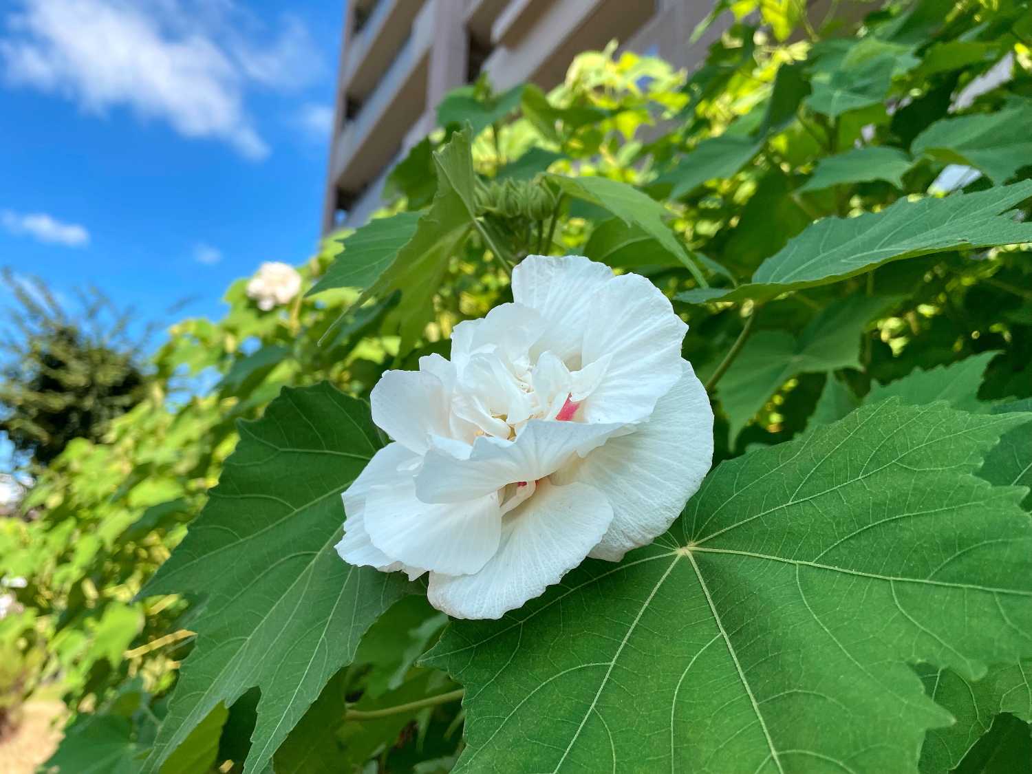 和泉中央線沿いには、マンション横に街路樹の一部としてスイフヨウが植えられていて、一重や八重咲きのスイフヨウがたくさん咲きますが、今年は剪定と猛暑続きの影響で、たくさん蕾をつけていましたが、やっと咲き出しました。 まだこれから見頃になりそうです^^