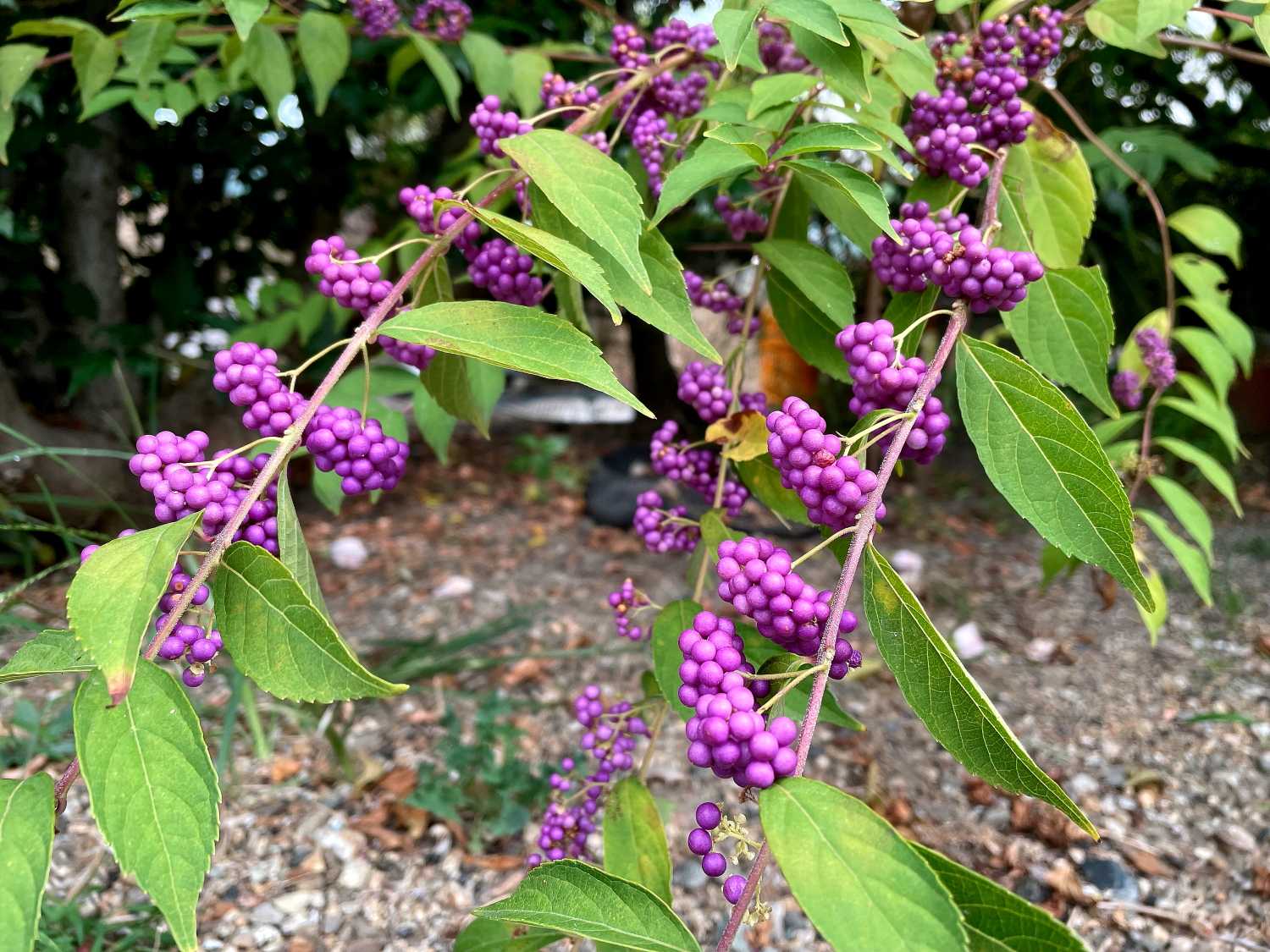 ☆近所の道路沿いで綺麗に色づき始めていた「ムラサキシキブ」