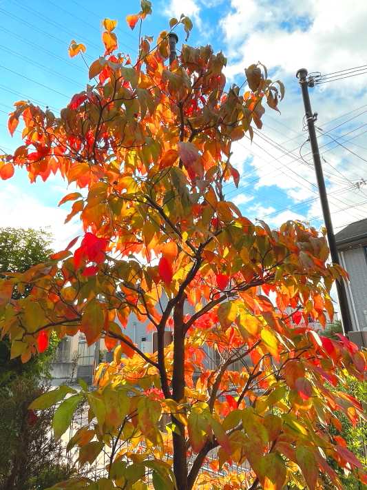 ☆お庭でやっと紅葉が始まった「ハナミズキ」