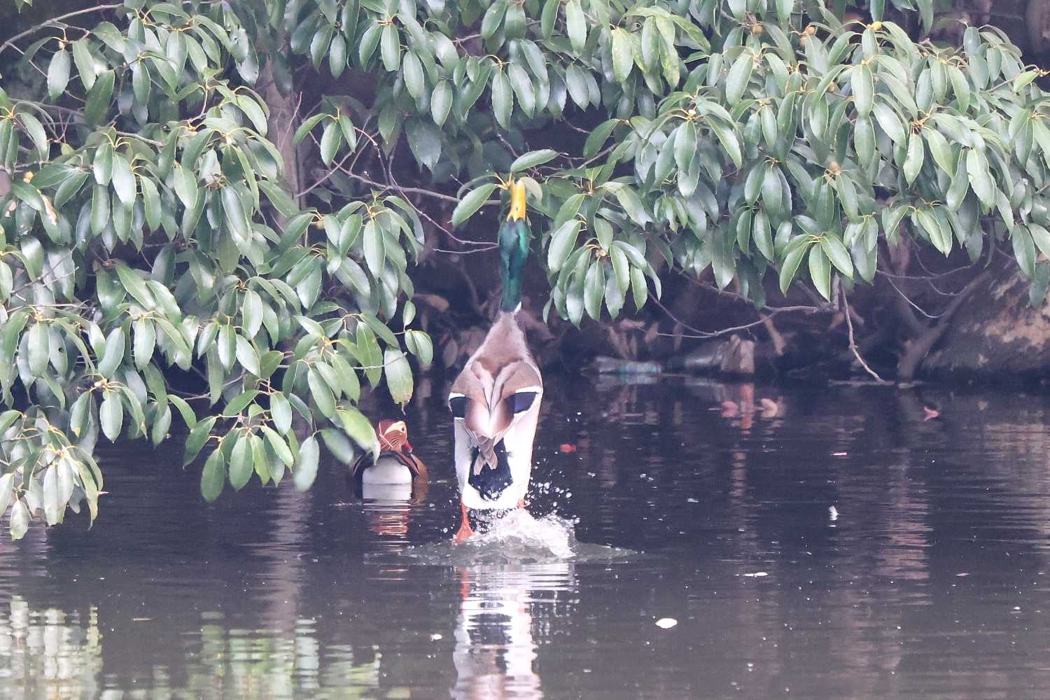 オシドリ(鴛鴦)「10羽ほどが越冬中」… 2025年11月11日