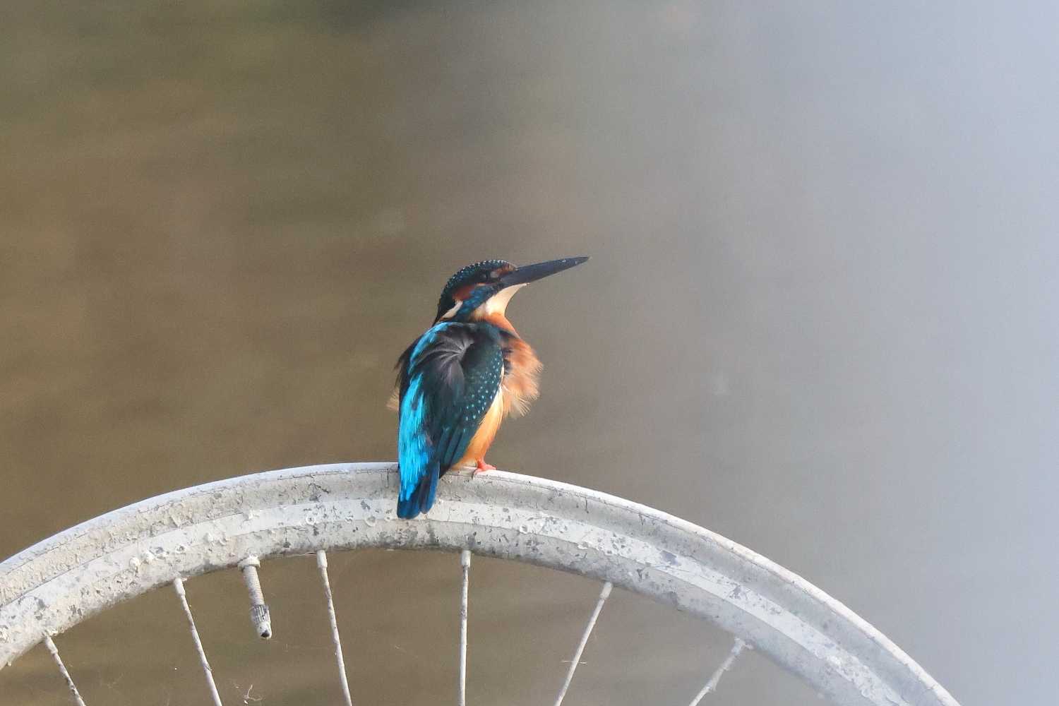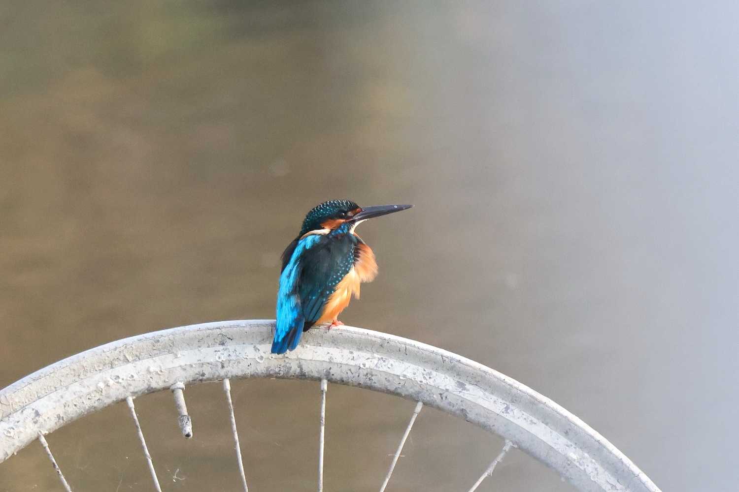 近所の水が減った大きいお池で、最近カワセミ♂をよく見掛けるようになったので、期待をしてカメラを持って出かけたところ、いつもカワセミがいる付近の木が、綺麗に伐採されていたので、諦めて帰ろうとしたところ、道路沿いから池に捨てられていた自転車のタイヤに、運よく留まっているカワセミを見つけたので、そっと近づいてガードレールの隙間から、数枚撮ることができました(^-^)
