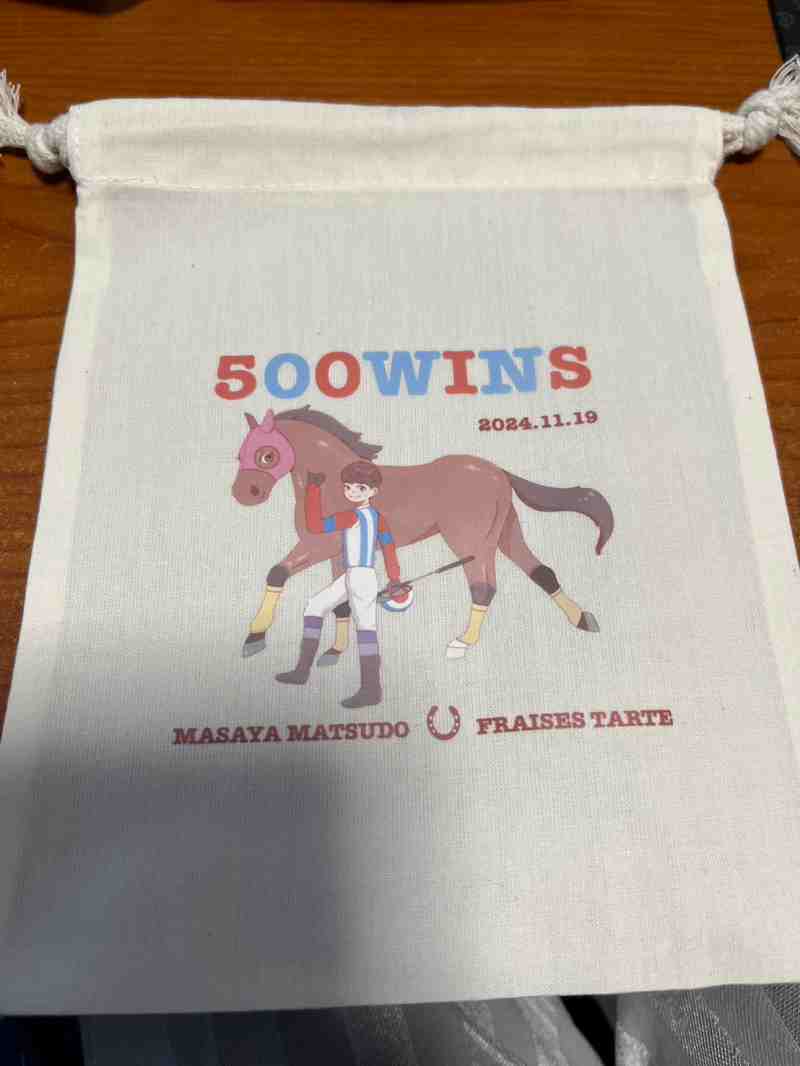 去年の11月19日に500勝しました。この日は前年に怪我した日でもあり、いい思い出の日に塗り替えられてよかったです!遅めの500勝なので控えめにですが記念の巾着を作りました。金沢競馬公式Xから応募してください。