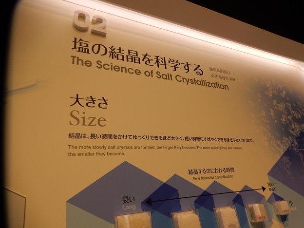 お早う御座いま~~~す♪今朝どんより曇っていて薄暗いです!(^O^)v強い雨が降る可能性がありますよ注意して下さい!暖くしてお過ごし下さいね(o^-')b全国各地で新型コロナウイルスの感染が広がっています!外出の自粛も発表されています。。(T_T)十分に注意しましょうねd(^-^)ネ!!今日は、クレヨンしんちゃん放送開始の日ですよ!(^o^)1992年(平成4年)テレビ朝日系テレビアニメ『クレヨンしんちゃん』の放送が開始されました。当初はシンエイ動画社内でも力を入れていた作品ではなく、上層部からも「半年持たせてくれ」と言われていたそうです。放送初回は4.0%と低視聴率でしたが、同年5月25日には10%超えて翌年の1月11日には20%を超え、1993年(平成5年)7月12日には28.2%と歴代最高視聴率を記録し、同月4歳 - 12歳の個人視聴率が67.6%に達したそうです。1993年(平成5年)に製作された映画第1作『アクション仮面VSハイグレ魔王』は、22.2億円の興行収入を記録しました。σ(^_^)も大好きな作品ですが、中々時間が合わないので見られませんがサザエさんやちびまる子ちゃんと合わせて、日本を代表する名作として誇れますよね!ちょっと恥ずかしいギャグもありますけど(^^ゞぜひ是非ご覧になって下さいね!「昨日の日記」の続きです塩とタバコの博物館の続きですよ!科学的な手法で精製される塩ですが、結晶化するのに時間がかかりますよ!(^O^)v塩の結晶、左側は大きくザラザラしていますよ!\(^o^)/右側は、サラサラで粒子が細かいですよ!台には見本が並んでいますよ!粒子の大きい塩の結晶は時間をかけて作ります!精製方法、それに時間を調節して色々な大きさにするんですね!大きさで味が変わる?クイズも出されていますよ!!味って変わるのでしょうか?クイズですよ!!(^O^)v塩の結晶は、正方形が基本です!しかし正六面体や角柱など様々な形の結晶も存在していますよ!面白いですね!※新型コロナウィルス対策で現在休館中です!明日もお楽しみにして下さいd(^-^)ネ!ブログランキングに登録しました(^O^)vポッチットお願いします。d(^-^)ネ! 今日は、月曜日ですよ!色んな事がありますが、今日もニコニコ頑張りましょう(o^-')b今日も良い事探ししましょう!!(^^)!良い一日になります様にd(^-^)ネ!p(^^)q