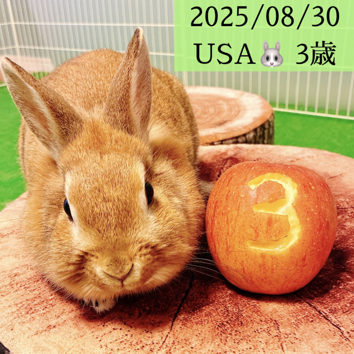 USA🐰 3歳になりました#PRうさぎは3羽目ですが一番手が掛からない子食欲旺盛・チモシー(美味しい草)もしっかりと食べ夏バテもせずに 育っています種類はライオンラビット見た目はネザーです後ろ髪とお腹の毛が少し長いうさ飼いさん宅でよく見かける ニトリの切り株スツール大のお気に入りです♪これからも楽しく暮らそうね👨💕🐰💕👩