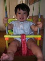いとこのうちに遊びに行ったところ、なあんと電動式ゴーカードがあった。そんなものがイランでも売っているんだね。いや、日本にもあったっけ?!と思った。アクセルとブレーキがあってギアは前の方に向くと前に進むが、後ろの方に向くと後ろに進める。そんな玩具は乗った事がない…。あっくんは興味津々で、つかまり立ちしたり触ったりしていた。姪のメリカもあっくんを利用していつまでもあっくんと一緒にゴーカードに乗っていた。最初は部屋の中で走り回ったけど、飽きて外へ行って走っていった。2時間以上は乗っていたくらい…。おかげ様で子守が楽になった笑。それから、ブランコもあるというので、部屋のドアのところにつけてくれた。揺れる揺れると喜んでいたけど、すぐ飽きてしまった。やはりゴーカードが気に入っているみたい。将来F1になりたい?!笑