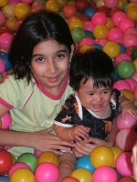昨日、パパとチャットしたらあっくんはもう歩けるようになったとのこと。歩き方が面白い~って。あっくんと早く会いたくなっちゃった。あっくんを宅急便で送って…笑。イランにて撮った写真があるので、ご覧下さい。公園の中にあった子供の遊び場で、いとこのメリカが遊びたいというので僕と一緒にしてくれたけど初めて入って子供の声がすごくて怖かったよ。洗濯物のかごを使って遊ぶのが大好きなの。ぐるぐるまわしたり中に入ったりしていたので、ママにかごを入れられたけど面白かった。いとこのメリカに悪戯されたの…。でもお気に入り笑(冗)僕ってかわいいでしょ~。女だったらすごくもてたでしょ!!!僕ね、パパみたいに筋肉もりもりになってやるう!いや、パパよりカッコいい筋肉マンになりたい!今から頑張ってやるぞ!ママが一番好きな写真だって!僕も気に入ってるよ笑。