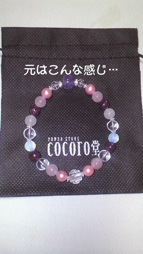 初めて天然石の既製品ブレスレットを購入しました。前から気になってたんですけどね、既製品となると中々… COCORO堂さんの9月のブレスレットです♪ Lサイズにしたら大きくて… 2粒石を取り、ちょっと配置変えてみました~(^-^)v
