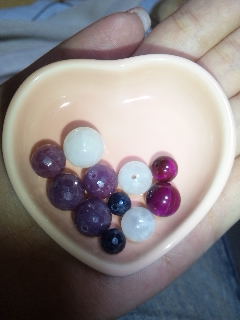 家にある天然石で、ゴムのブレスレットを作ろうと思った。 いつもはワイヤーなんだけど、たまには良いかな~と思った事と、友達が金属アレルギーなのでゴムかは付けれるな~と思ったから(v_v) とりあえず作ってみたけど、ゴムが弱い様に感じる… 明日お店に行ってみよう!
